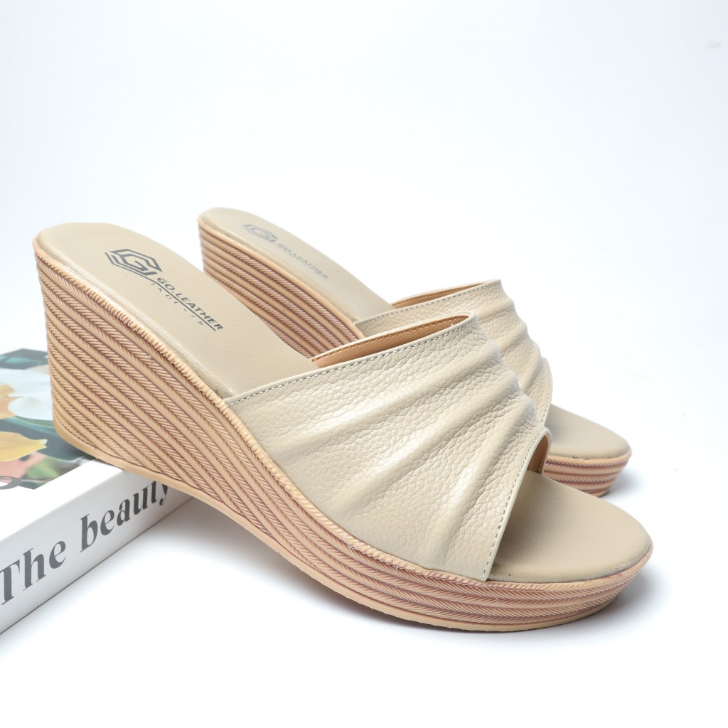Goleather Sandal Wedges Wanita - Sandal Kulit Hak 7Cm