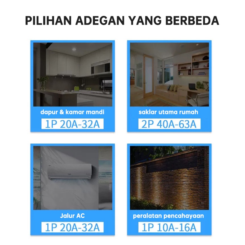 1P 2A, 1P 4A, 1P 6A, 1P 10A, 1P 16A, 1P 25A, 1P 32A, 1P 40A, 3P 10A, 3P 16A