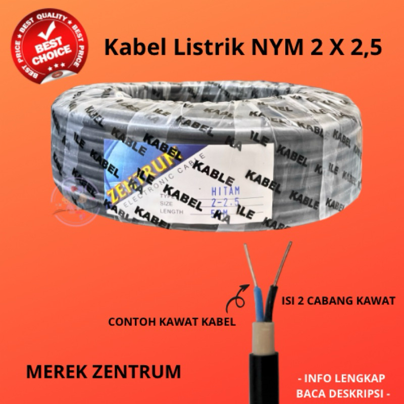 Kabel Listrik Zentrum Nym 2 X 2,5 (50 Meter) Warna Hitam / Putih