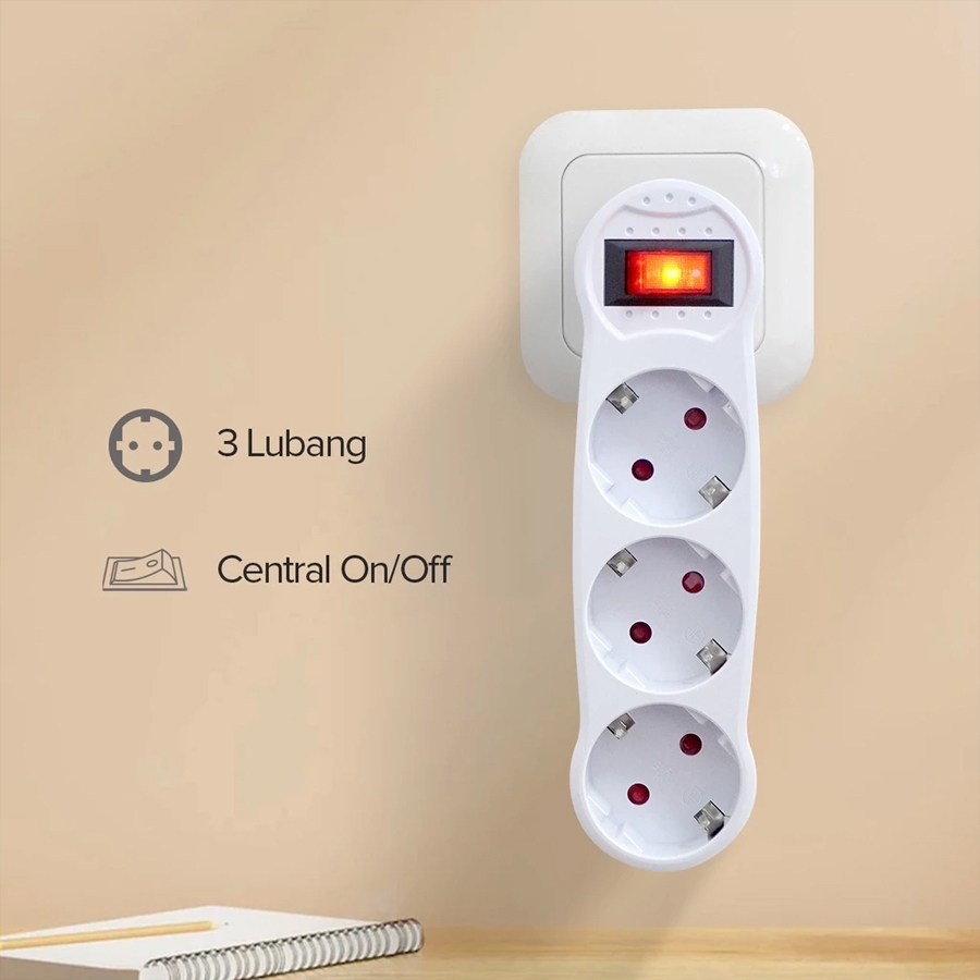 Steker Colokan Listrik 3 Lubang + Saklar 002K3 - Kenmaster Plug Adaptor Sni Aman Komponen Full Kuningan