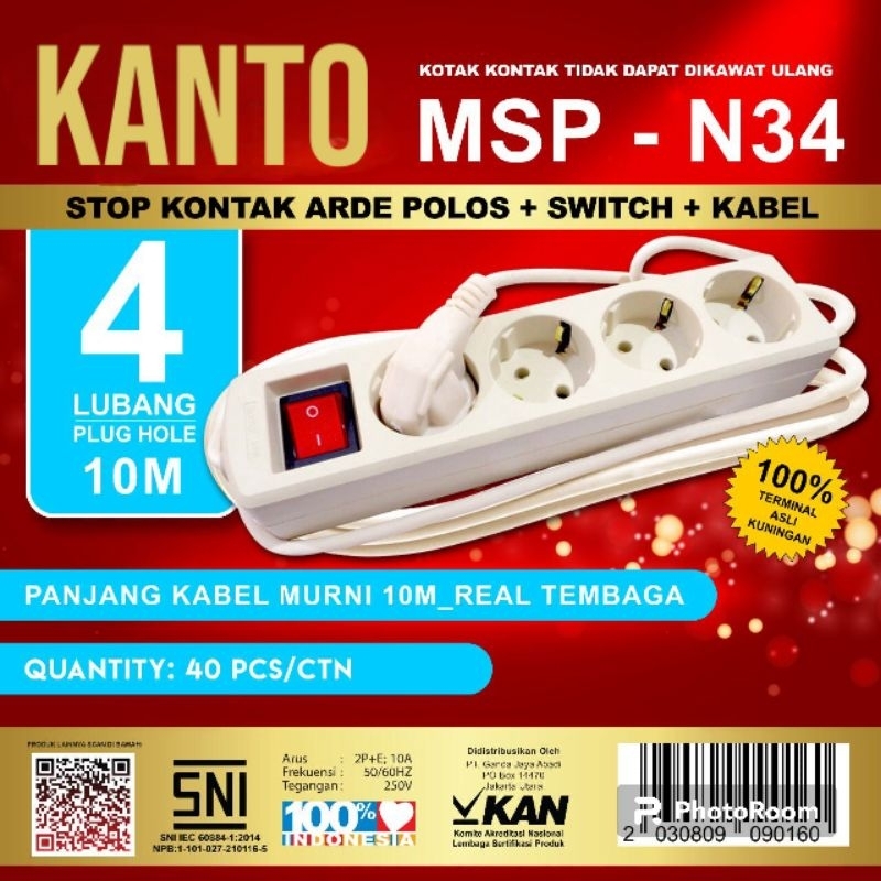 Stop Kontak Kabel 10 Meter 10M 3Lubang - 5 Lubang Sni