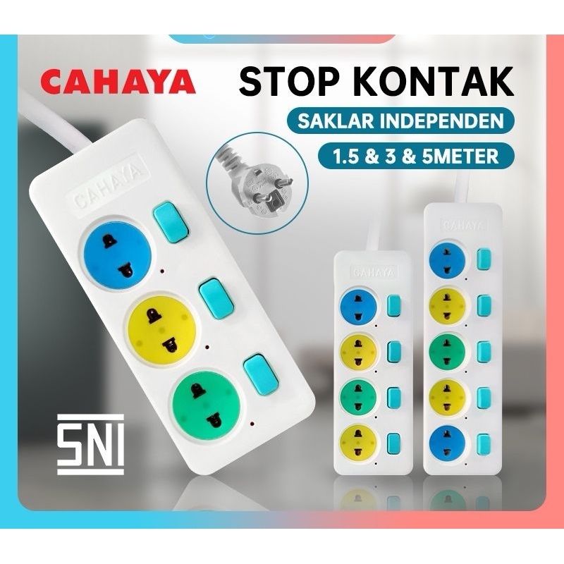 Stop Kontak Kabel Saklar 3/4/5 Lubang&15/3/5M/ Stop Kontak Gepeng Sni/Cahaya Sc-793/4/5