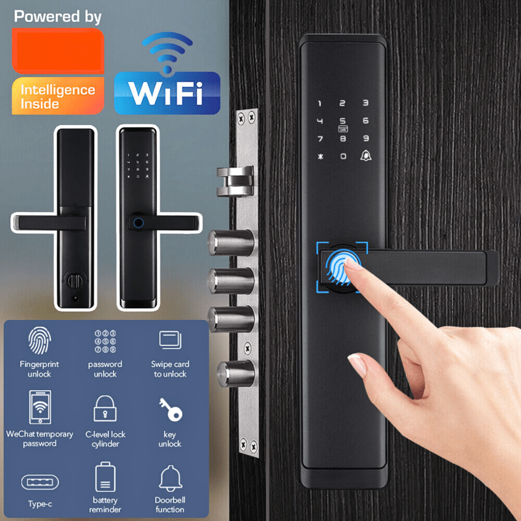 Taffhome Kunci Pintu Digital Smart Door Lock Fingerprint Aluminium Kartu Password Rfid Alarm Xr25