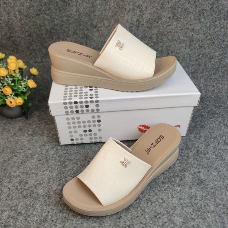 Sofiya Ori 6910 60 Wedge Wedges Sendal Sandal Slop Wanita Import Sandal Teplek / Ringan Hak Tinggi 5Cm
