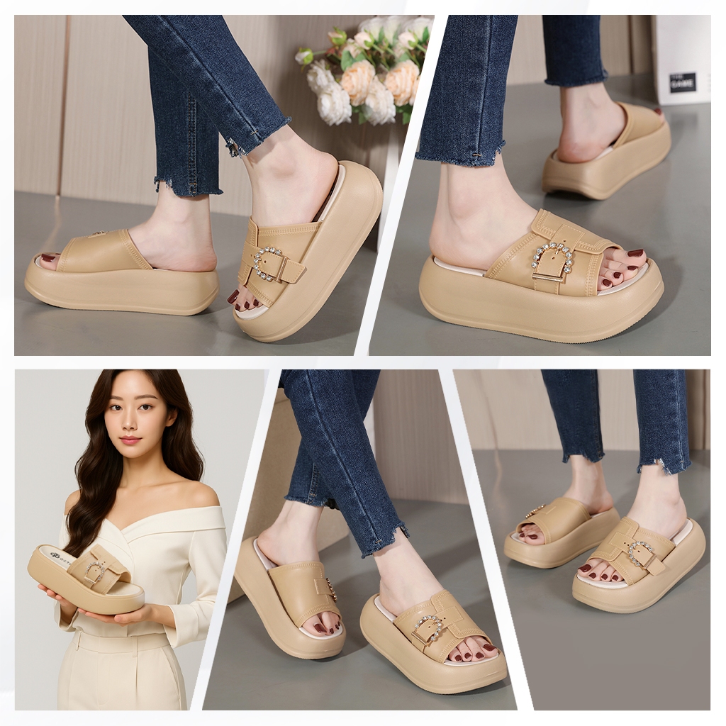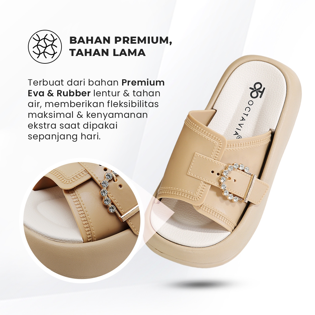Octavia Sandal Slide Slip On Wedges Wanita #Oc-268 (Free Box)