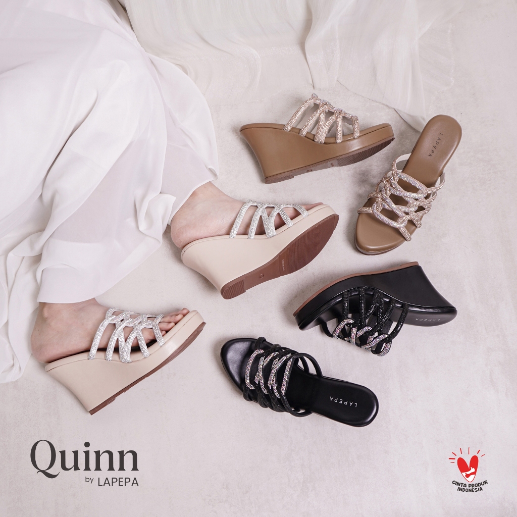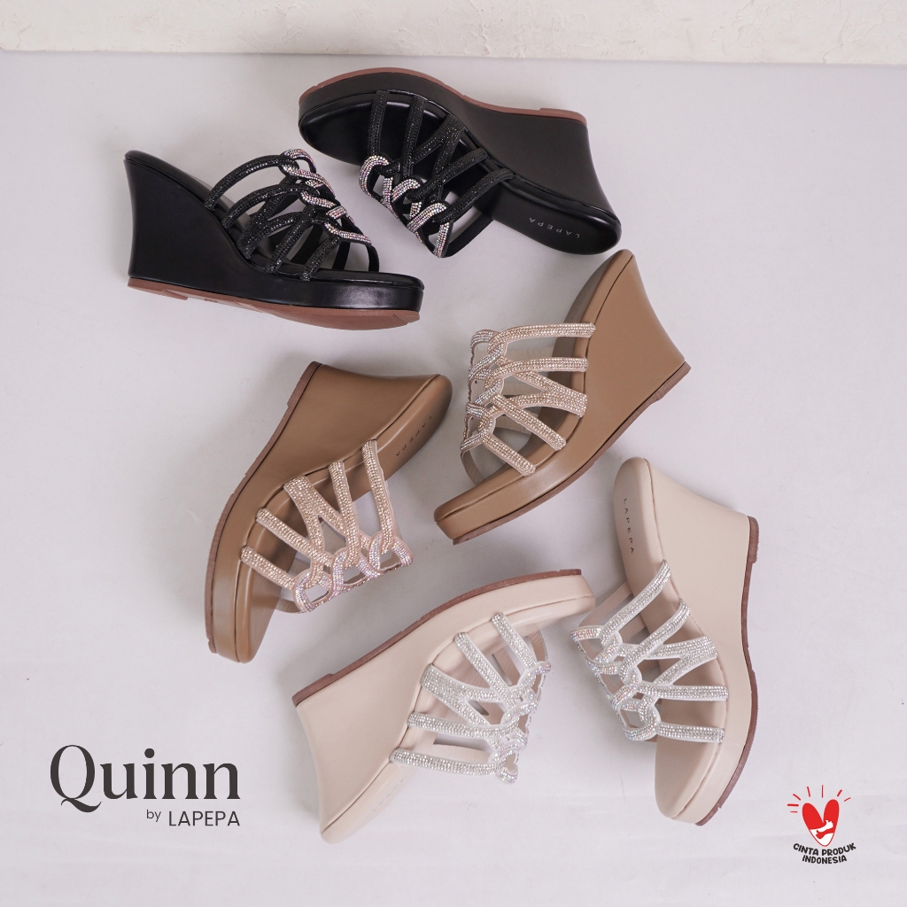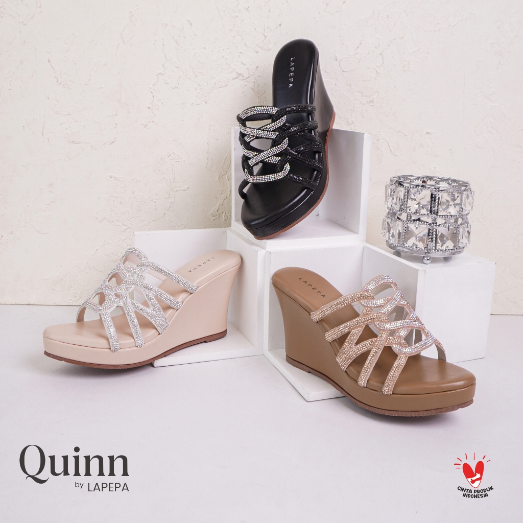 Lapepa - Quinn Sandal Wedges Wanita Sendal Hak Tinggi Cewek Variasi Kristal