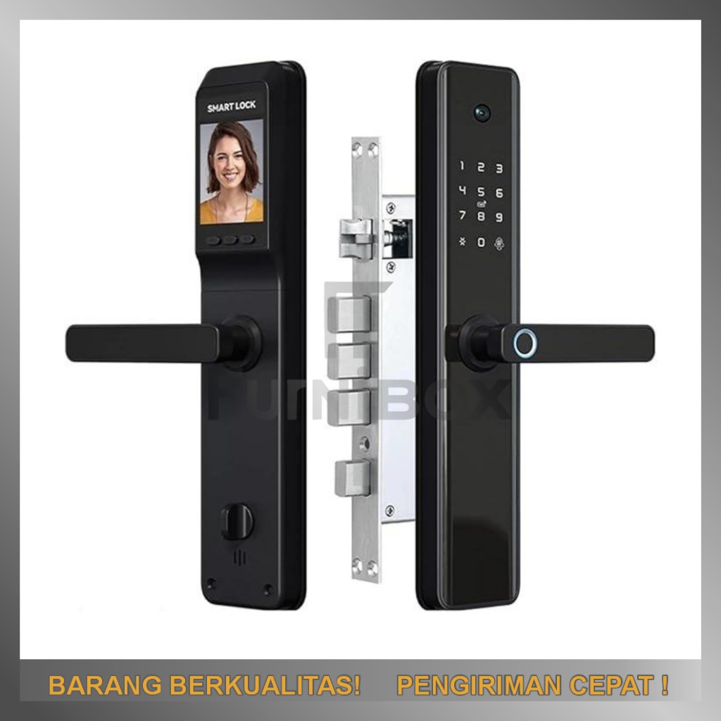 Smart Door Lock Gagang Layar Kunci Pintu Rumah Fingerprint Password Kartu Key Dilengkapi Kamera