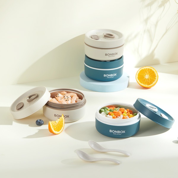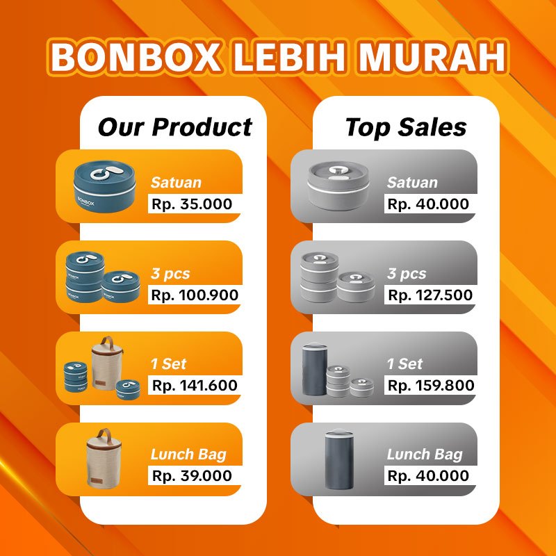 Paket Lengkap Bonbox: Kotak Makan Stainless Steel 304 300Ml (Warna Beige, Pilihan Jumlah) + Tas Makan Silinder Insulated