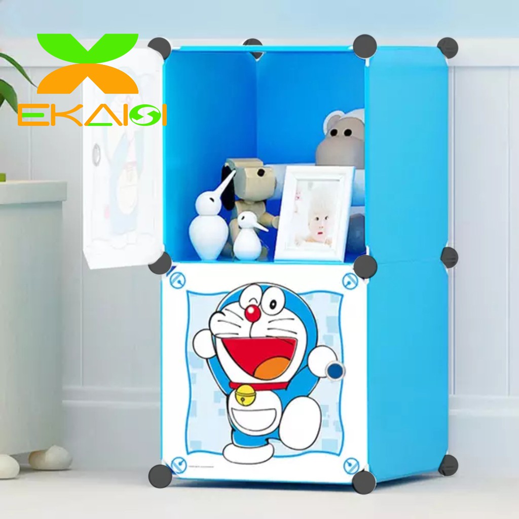Lemari rtable pakaian rak serbaguna susun plastik lemari baju rak buku 2 pintu/kotak LS
