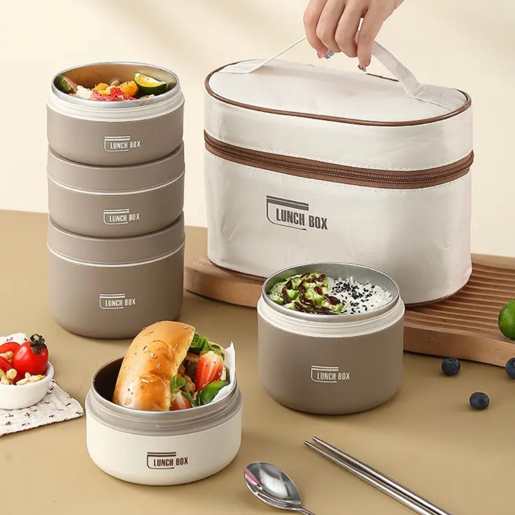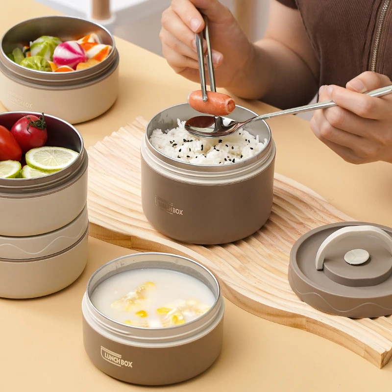 Pumer Kotak Makan Stainless Steel Tahan Panas Lunch Box Set Portabel Bento Container Sup Tahan Bocor Kerja Siswa Piknik