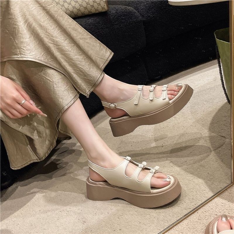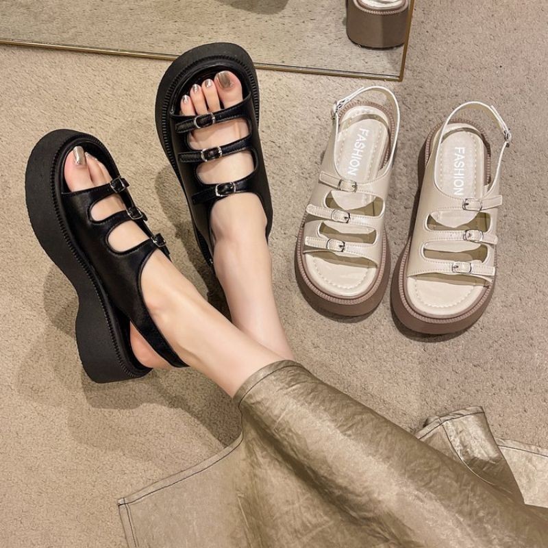 Caitlin - Valeria Sandal Sepatu Wedges Bertali Wanita Fashion Korean Style Kekinian Aa16
