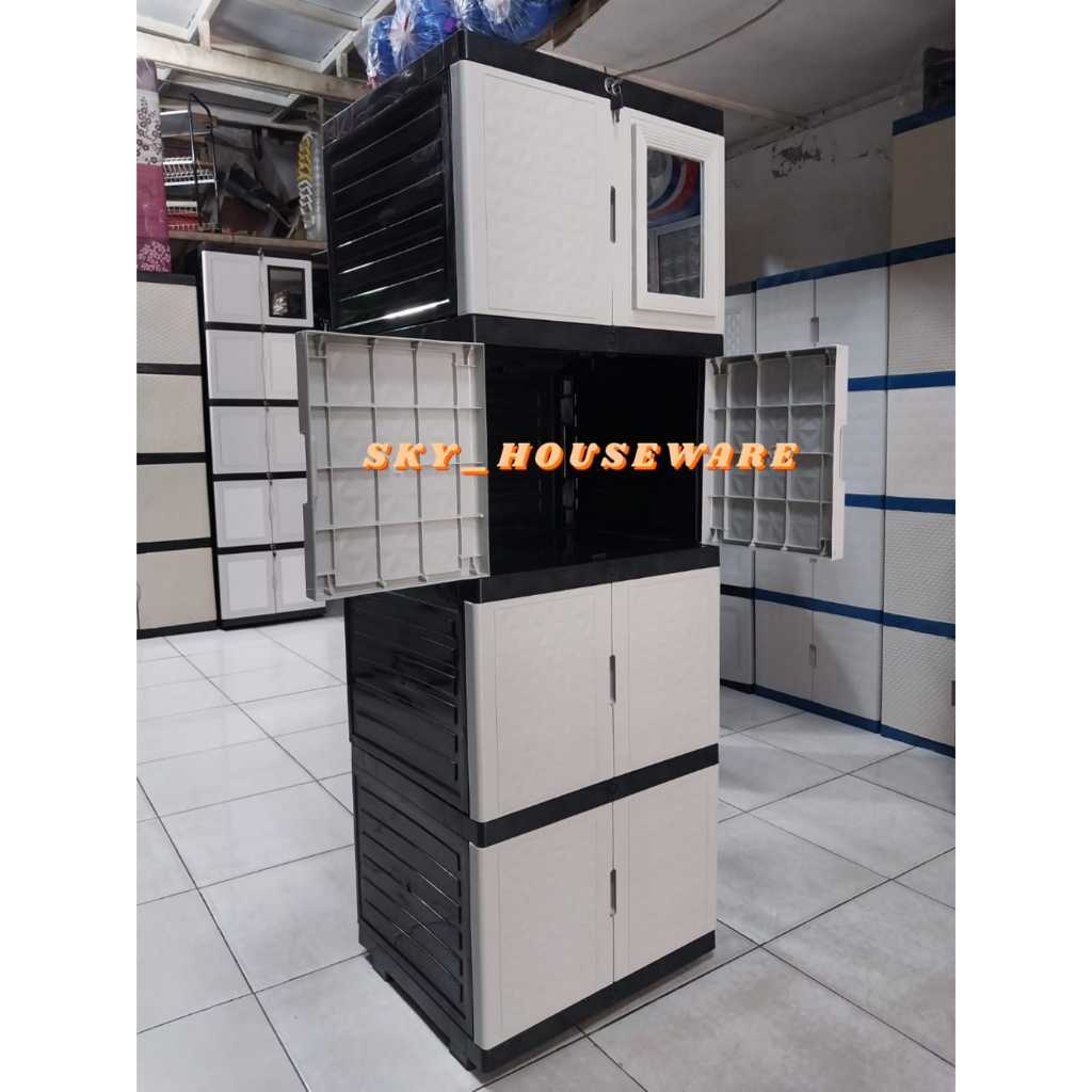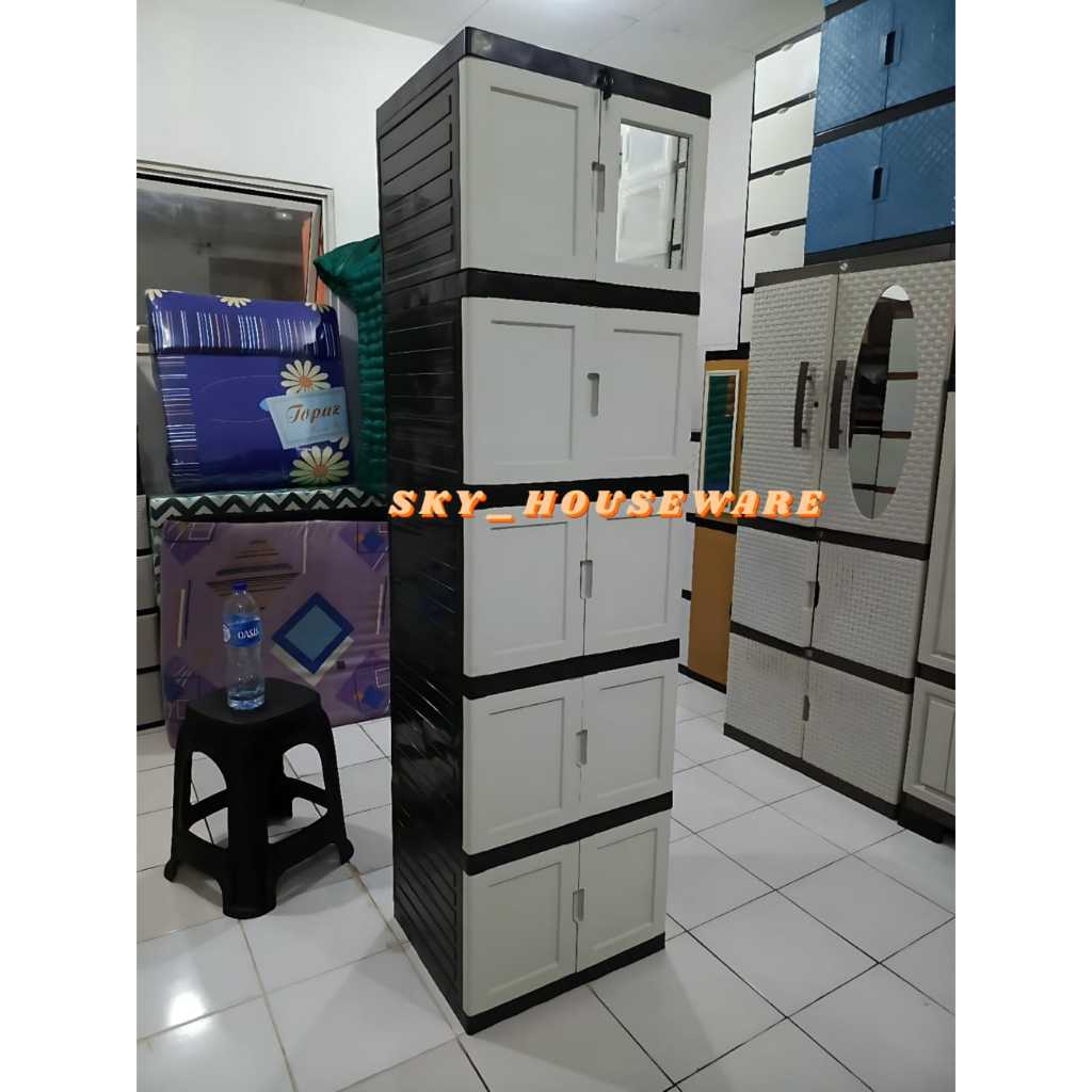 lemari plastik lemari pakian plastik susun KACA ada KUNCI susun 5