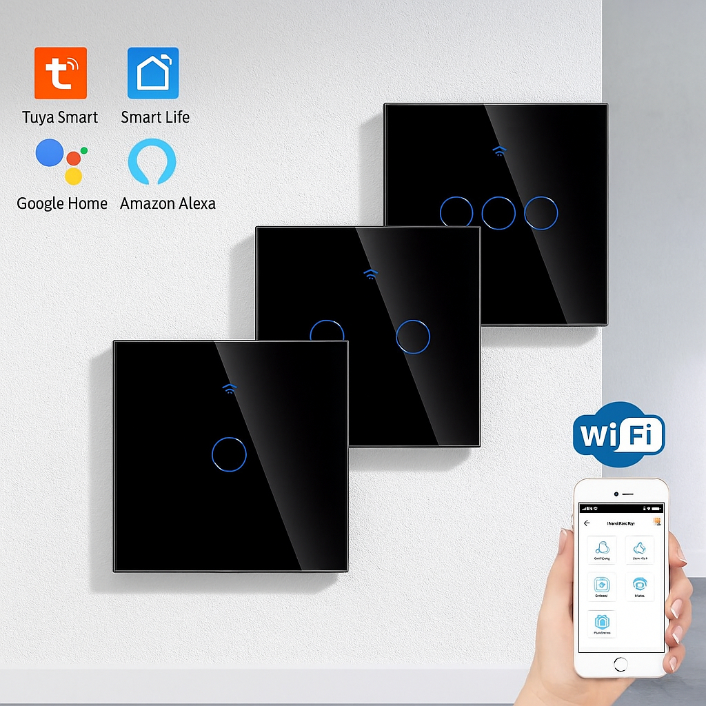 Electric Saklar Lampu Black Elegan Design Wireless Wifi Remote Tuya Alexa Touch Control