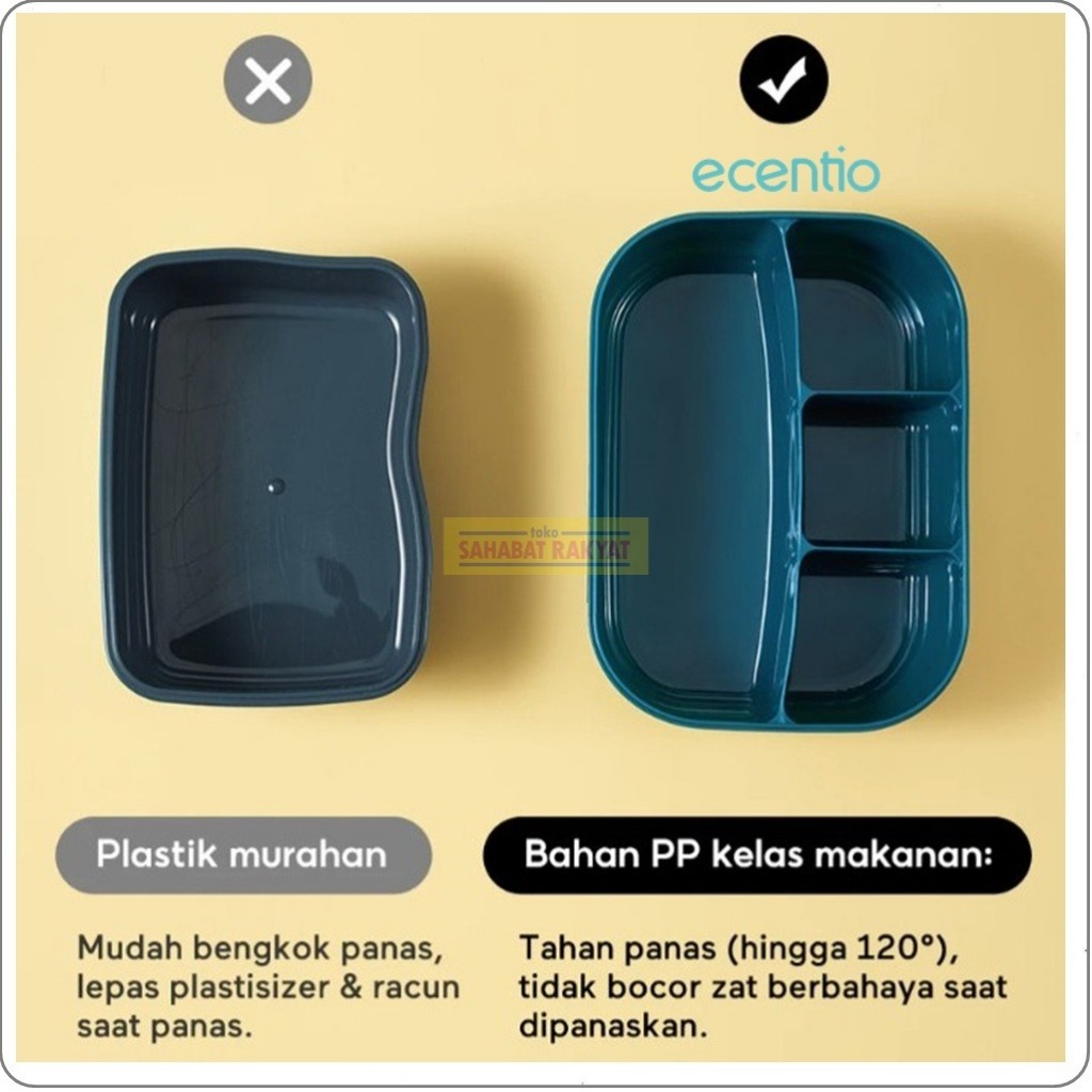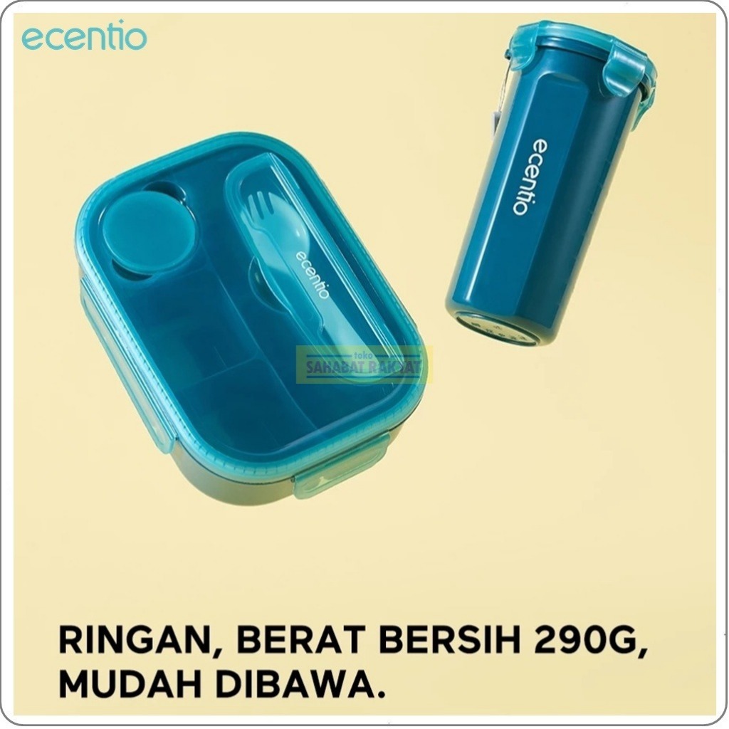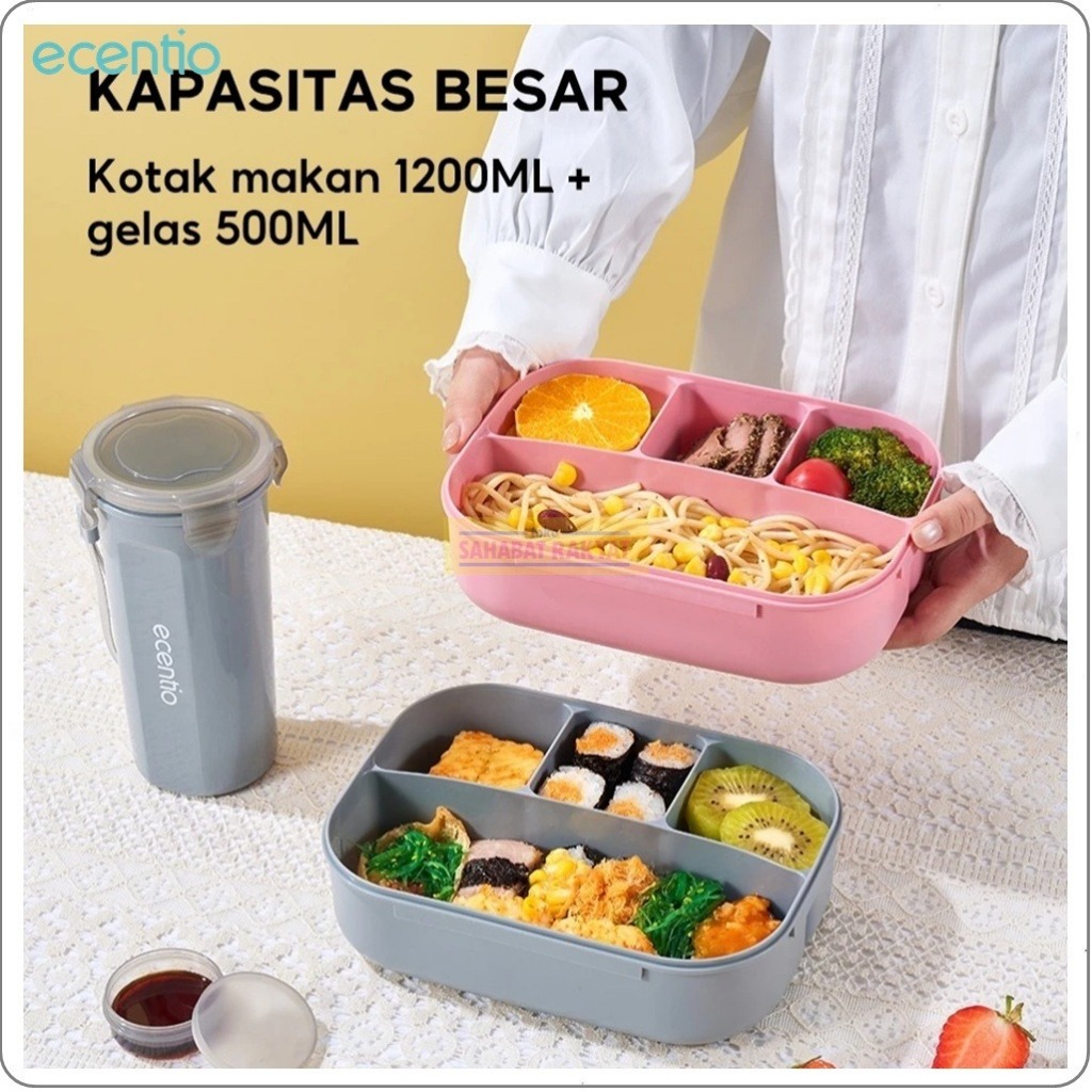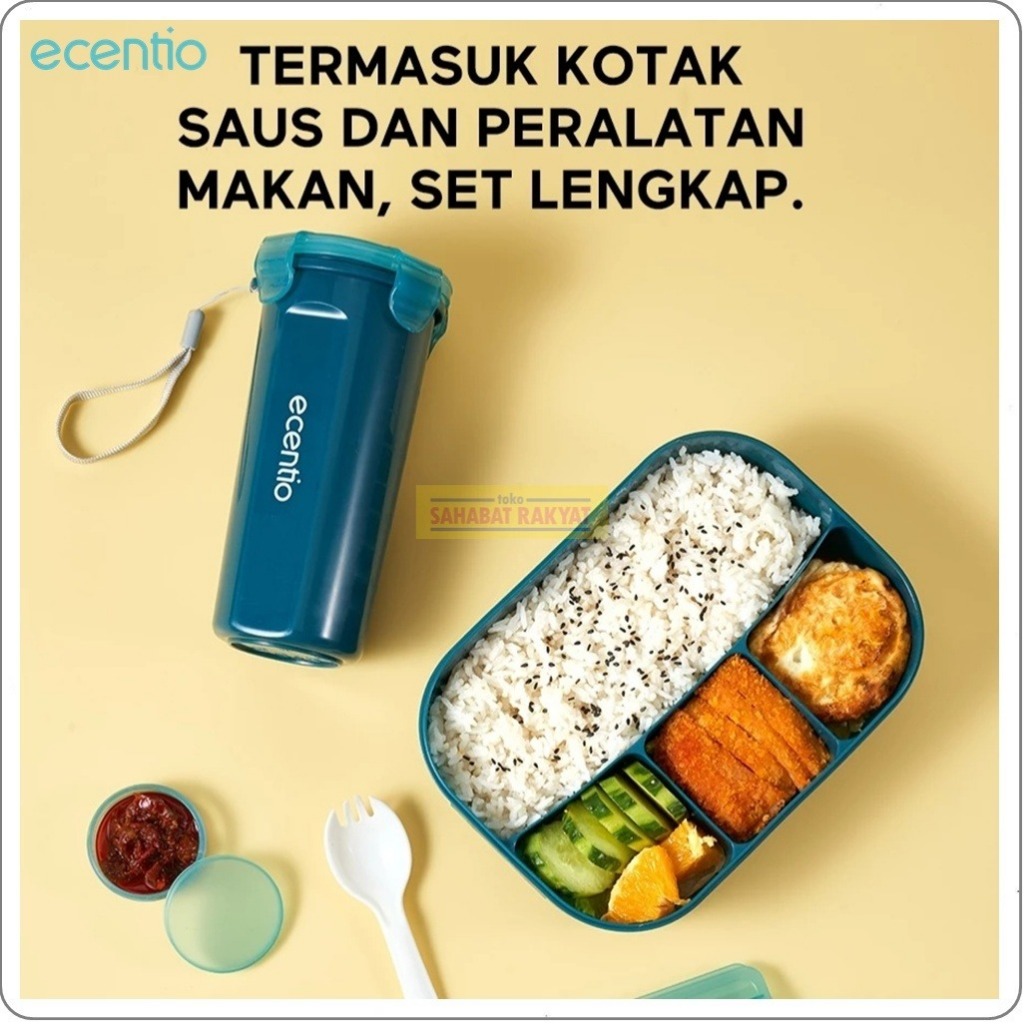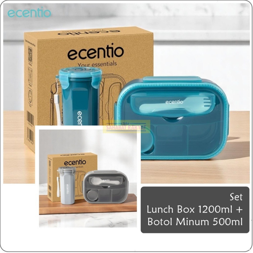 Set Lunch Box 1200Ml + Botol Minum 500Ml Ecentio. Free Sendok & Kotak Saus. Bebas Bpa. Pp Food Grade