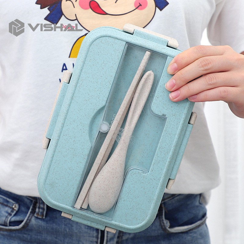 Vishal Lunch Box Kotak Bekal Makan Jerami Gandum Kotak Makan Free Sendok Tempat Makan Lunch Box Kotak Bekal Makan Jerami