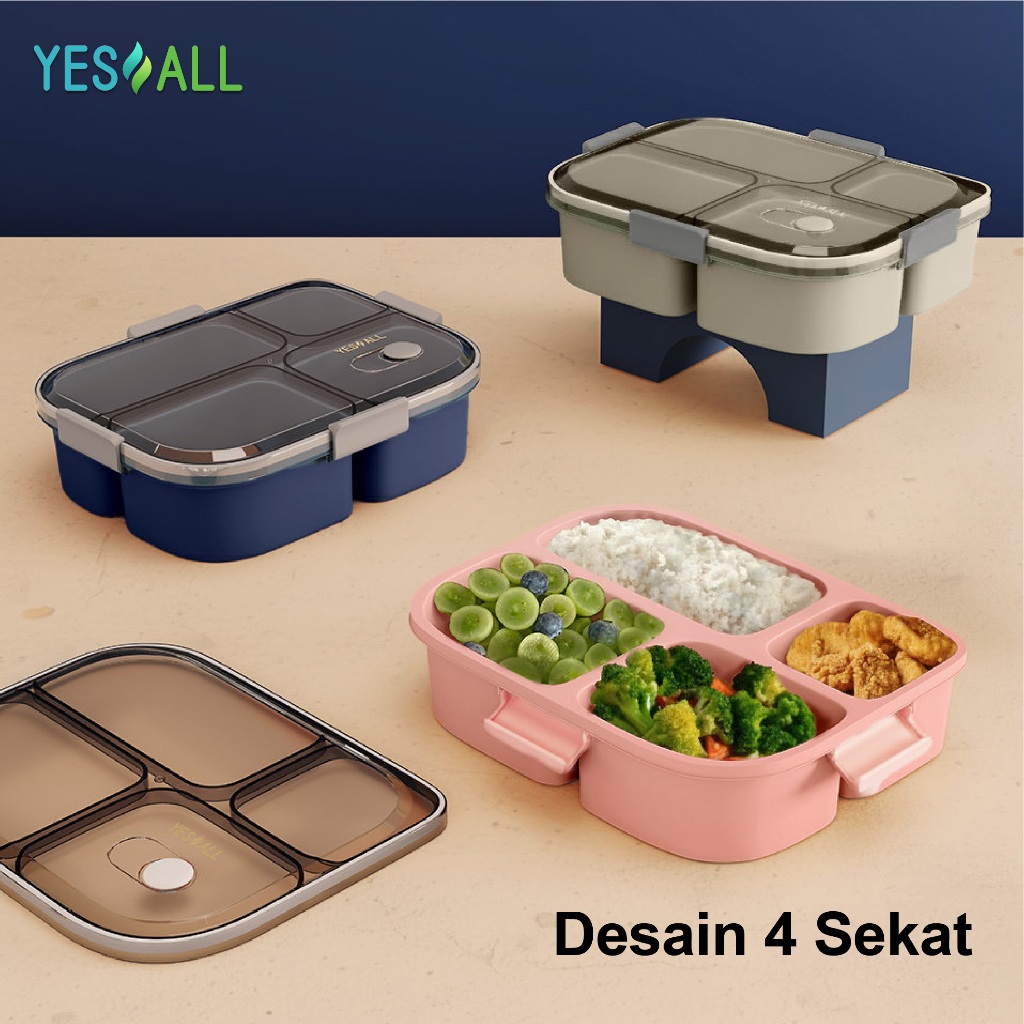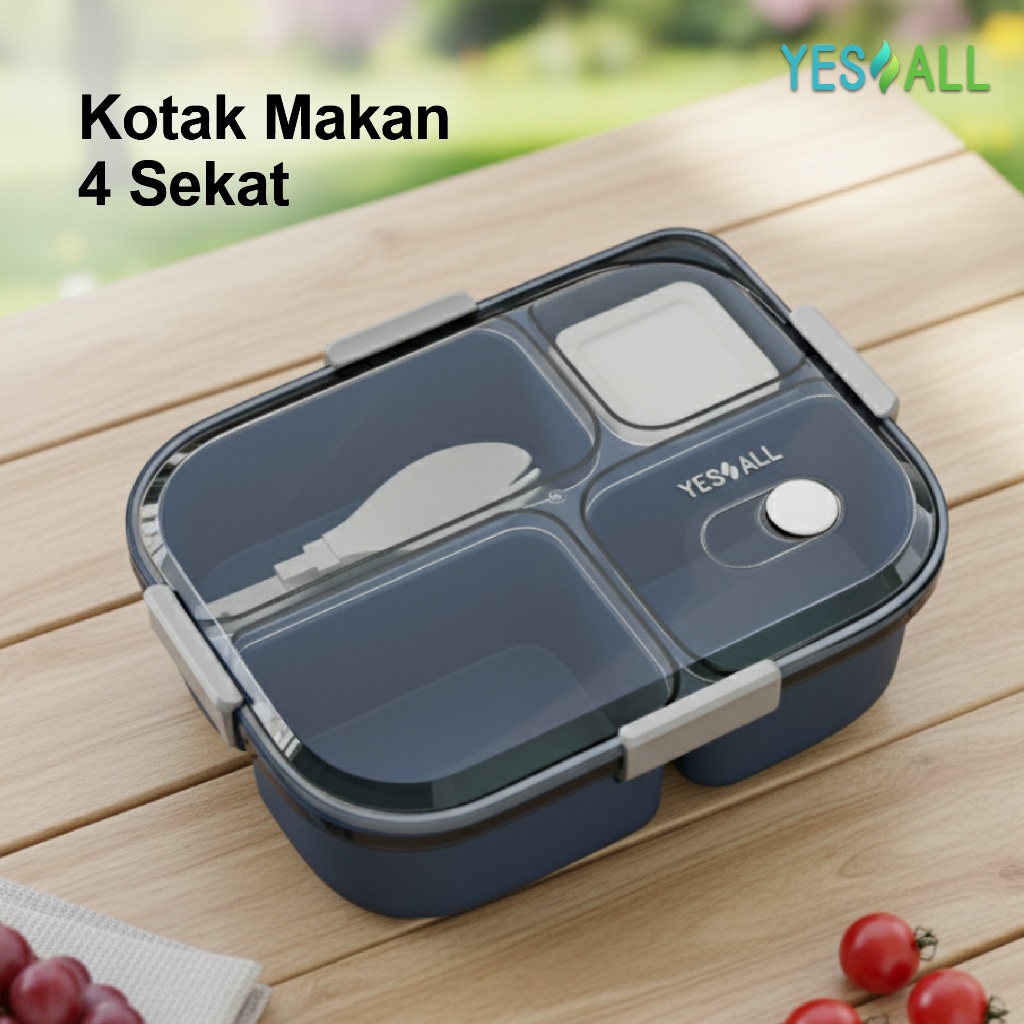 Yesall Lunch Box 1200Ml Kotak Makan Bento 4 Sekat Estetik Korea Sehat Tempat Bekal Makanan Anti Bocor – Teal Blue / Gree