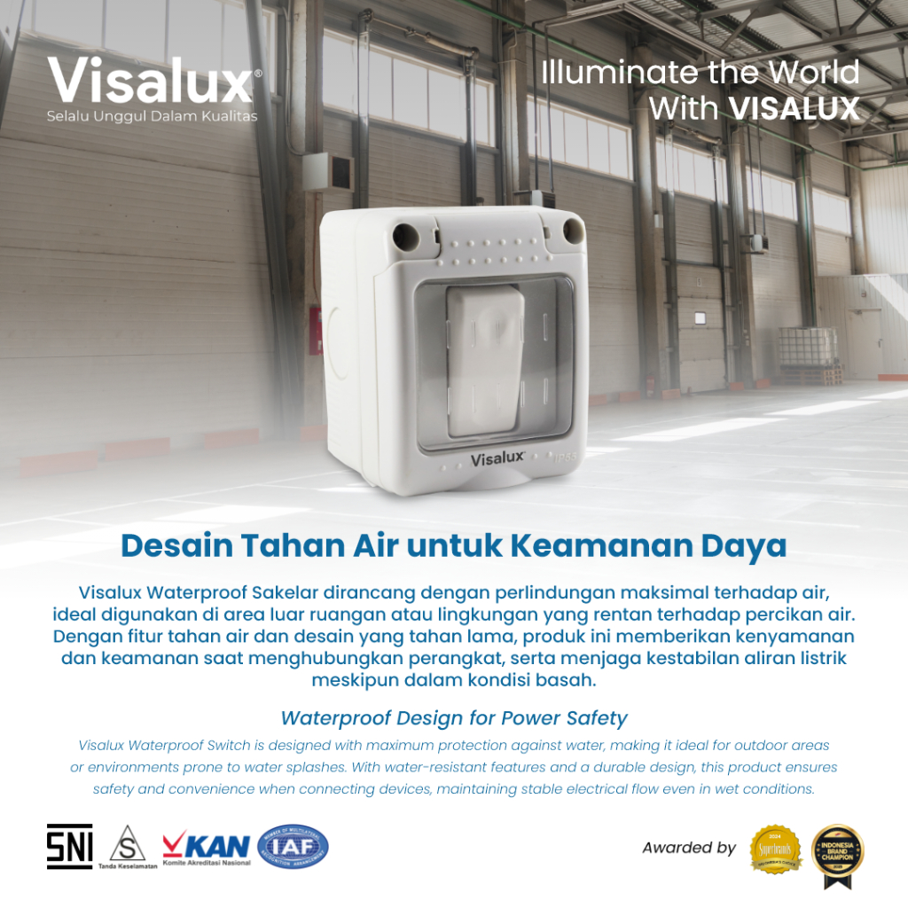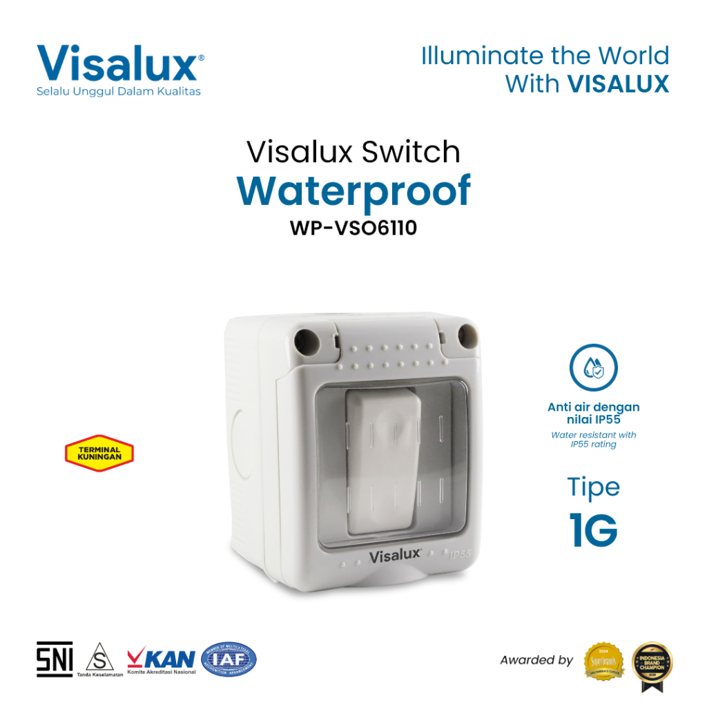 Visalux Waterproof Switch Tipe 1G - Sakelar Anti Air (Wp-Vso6110)