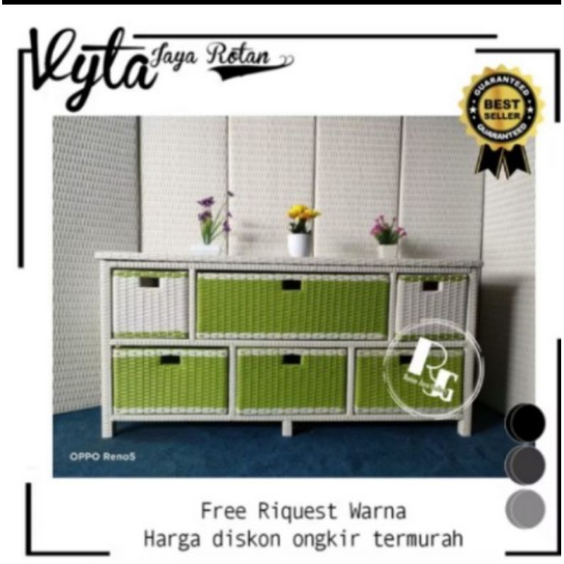 READY STOK lemari l rotan sintetis model 6 l motif jasmin