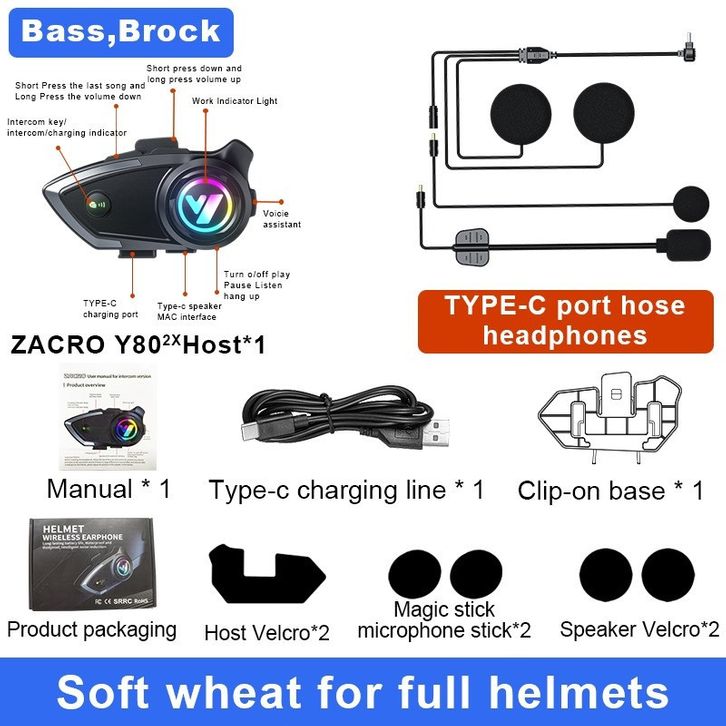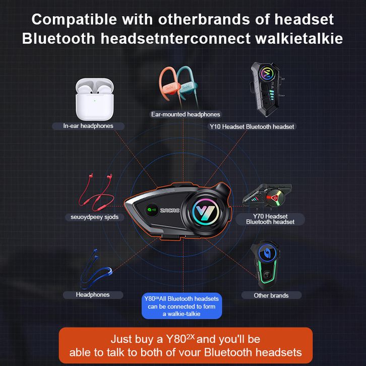 Ready Y80 2X Intercom helm Bluetooth Chip Qualcomm 5.0 FM Radio intercom dua arah dan Peringkat tahan air IPX6
