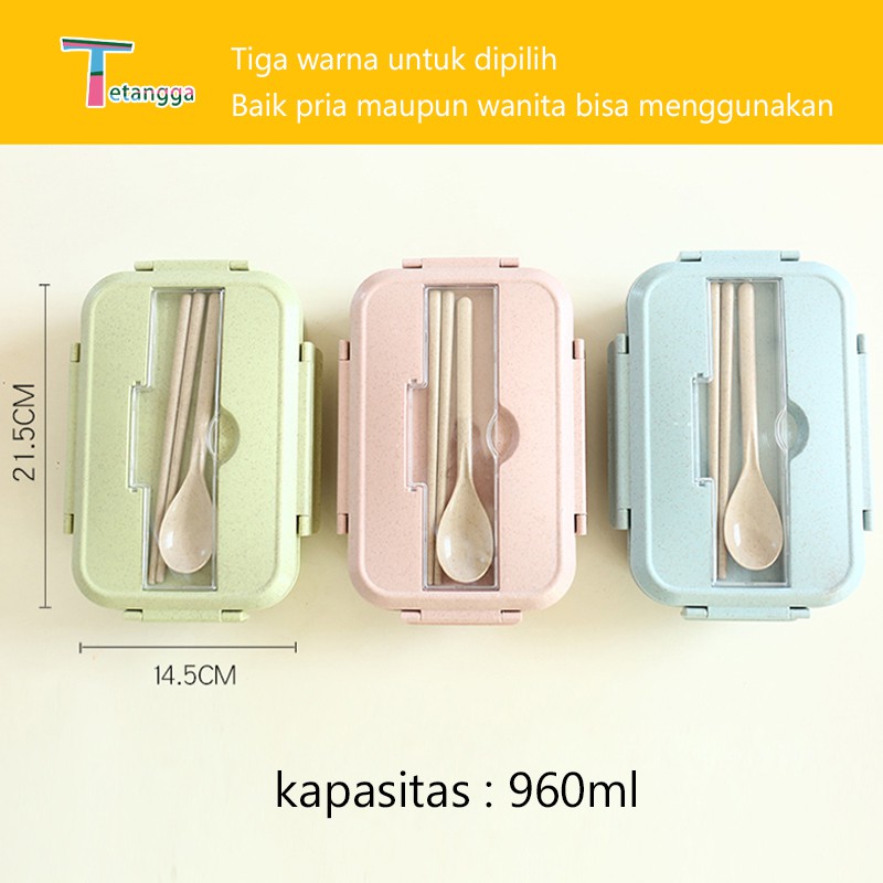 Lunch Box Set Kotak Bekal Makan Jerami Gandum Kotak Makan 1000Ml 4 In 1 Free Sendok Tempat Makan