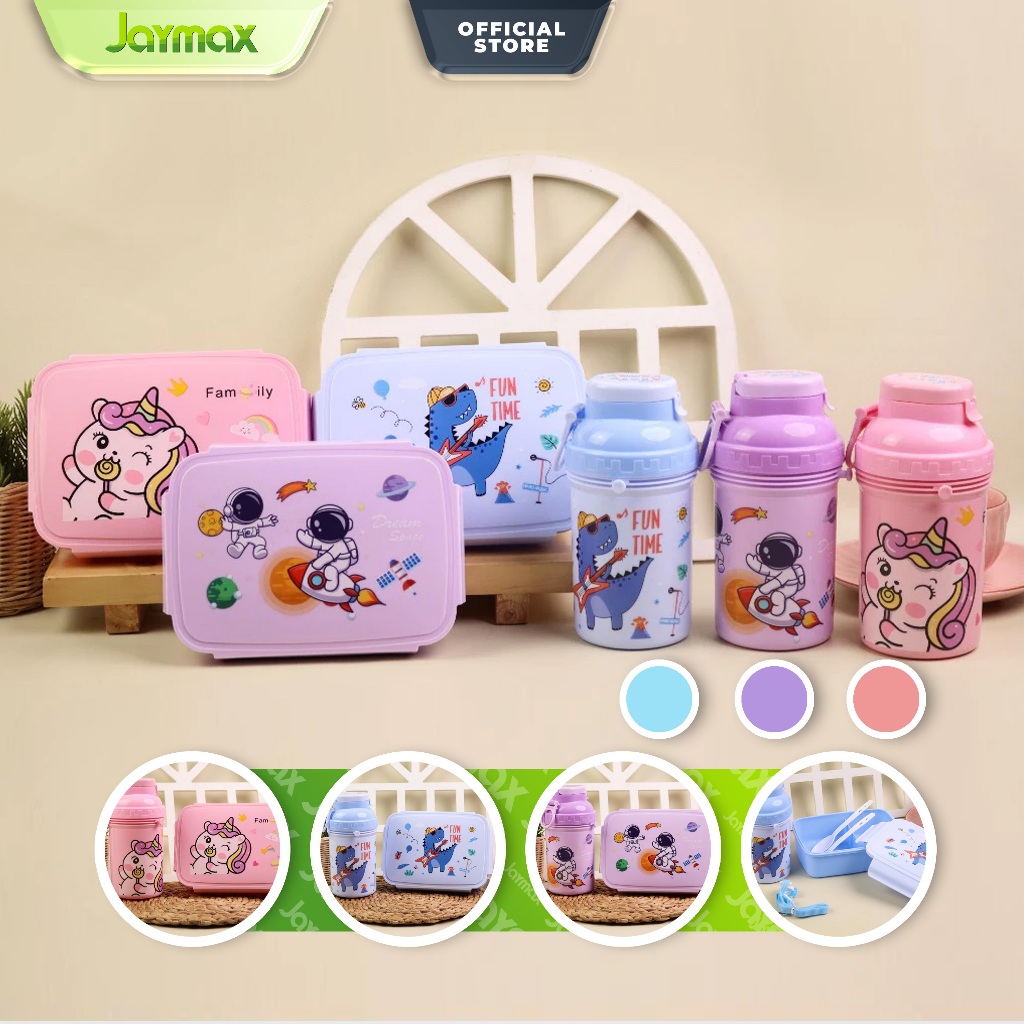 Lunch Box Set With Bottle Kotak Makan Anak Sekolah Lengkap Botol Minum Tali Sendok & Tas Xxy-39