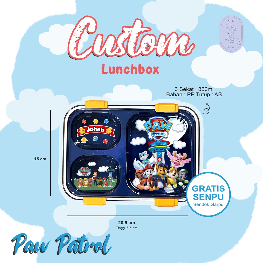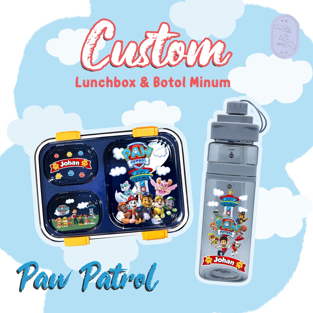 Miso Custom Karakter Paw Patrol Lunchbox 3Grid Free 2In1 Sendok Garpu/Botol Minum 2In1 Sedot&Teguk