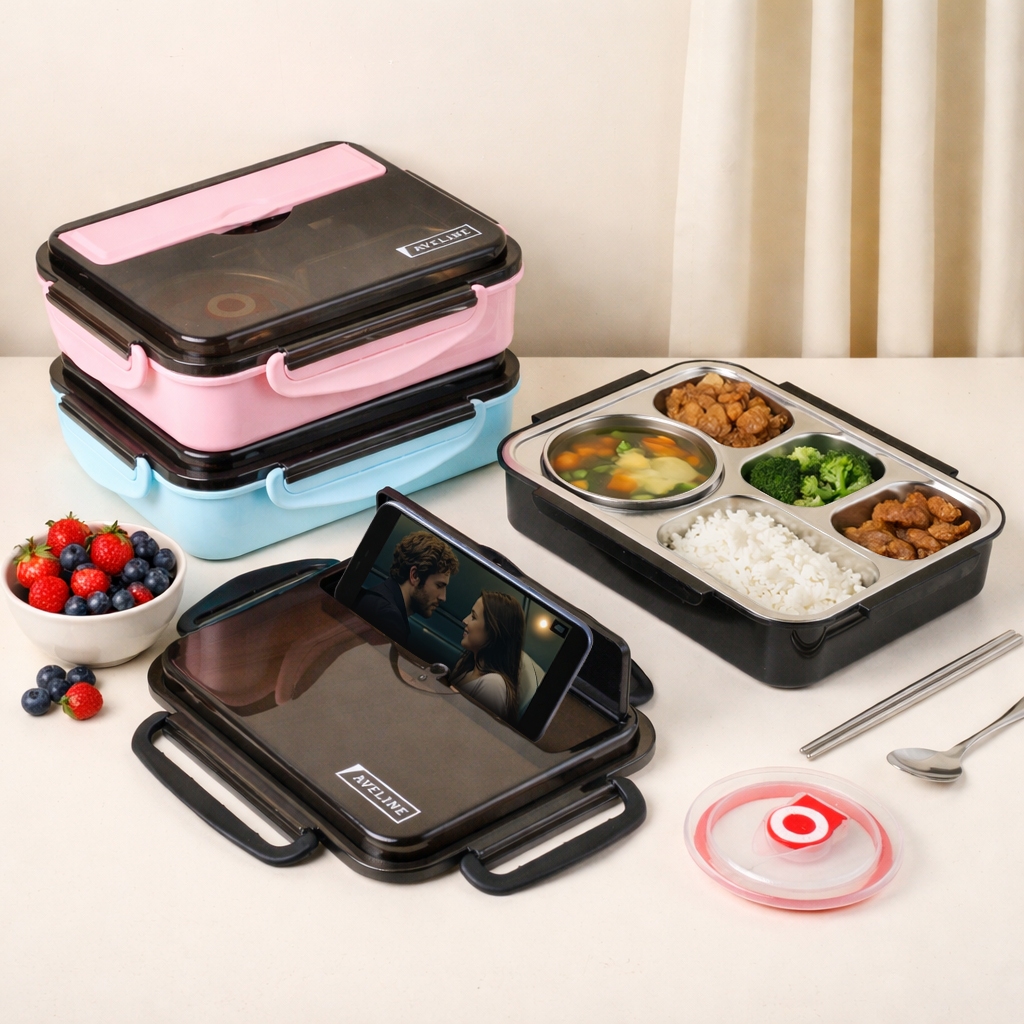 Nexxio Lunch Box Kotak Makan Sekat Stainless / Lunch Box Stainless Tahan Panas Dan Anti Tumpah
