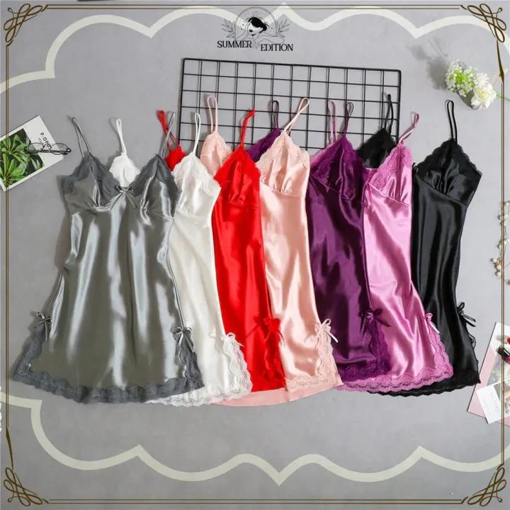 (Cataleya_Oficial) Lingerie Daster Piyama Satin Baju Tidur Renda Pakain Dalam Wanita Bahan Satin 1072