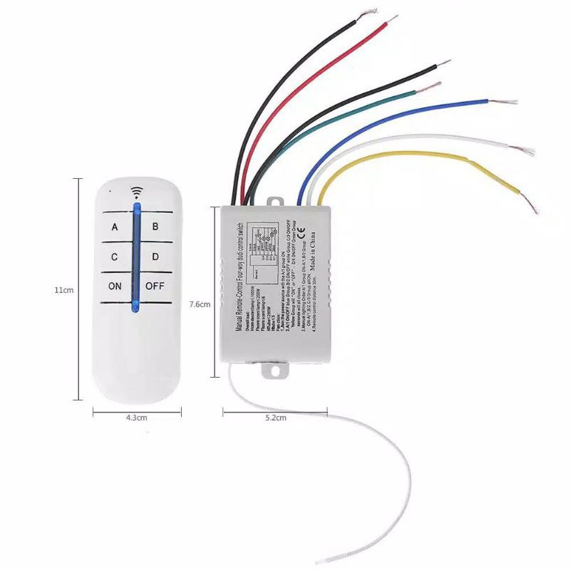 4 Ways 220V Saklar Lampu Wireless Dengan Remote Control