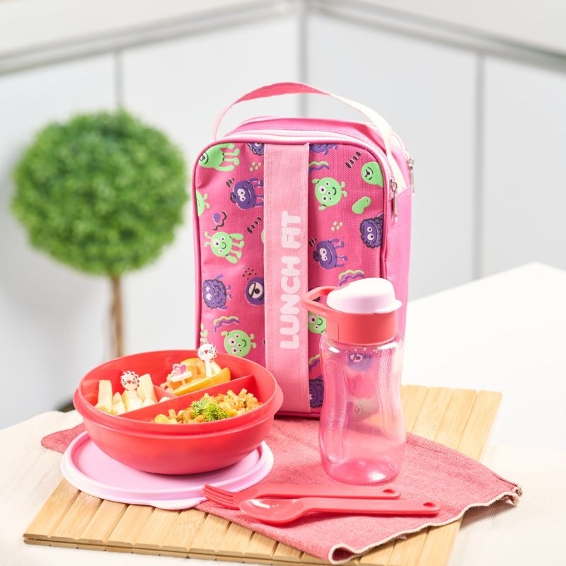Tas Bekal Kotak Makan Bulat Botol Free Sendok Garpu Set