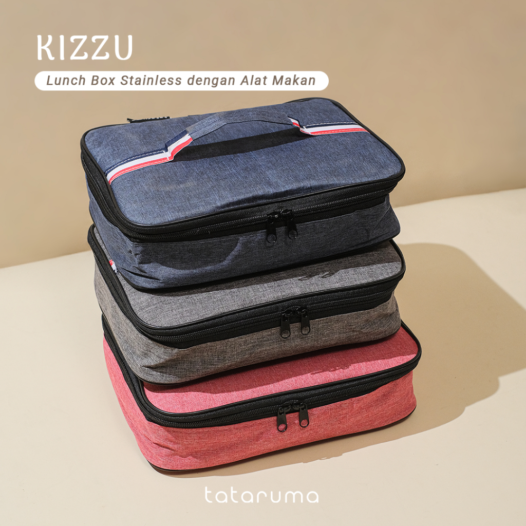 Tataruma Kizzu - Lunch Box Stainless 304 Sekat Kotak Bekal Dengan Alat Makan Dan Tas