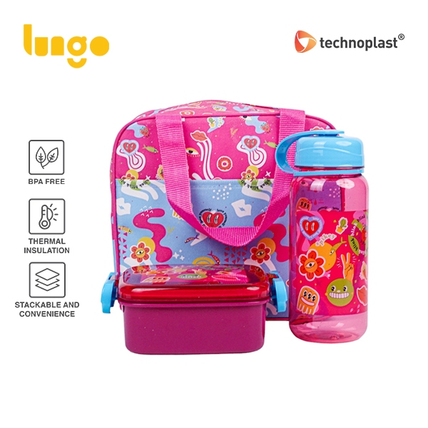Technoplast Lungo Marie Soft Kotak Bekal Anak | Tempat Makan Anak + Botol Minum | Lunch Box Set Bpa Free - Food Grade