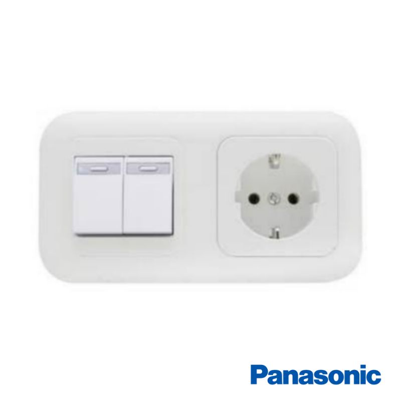 Panasonic Saklar Seri 2 Gang + Stop Kontak Non Cp Wide Series Putih