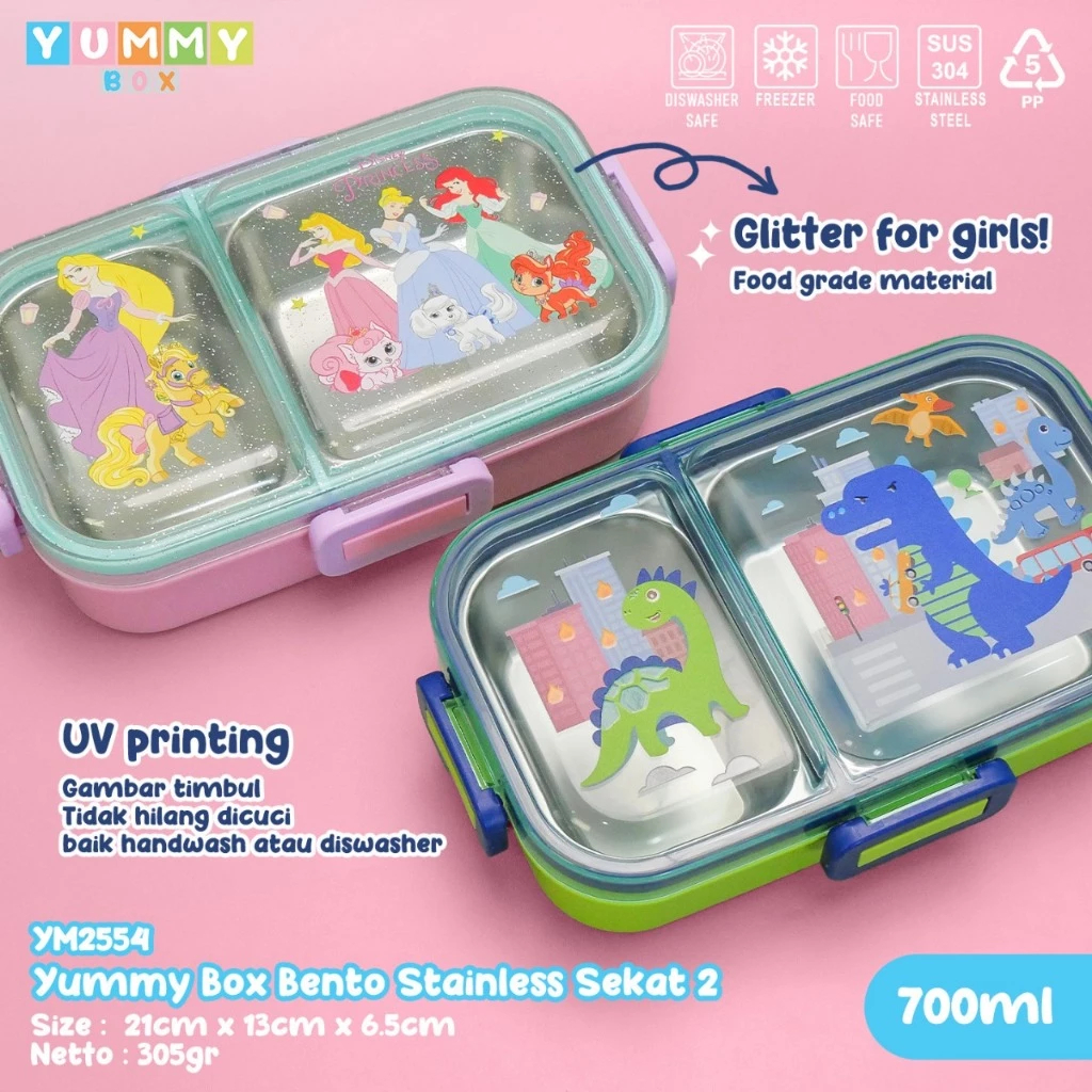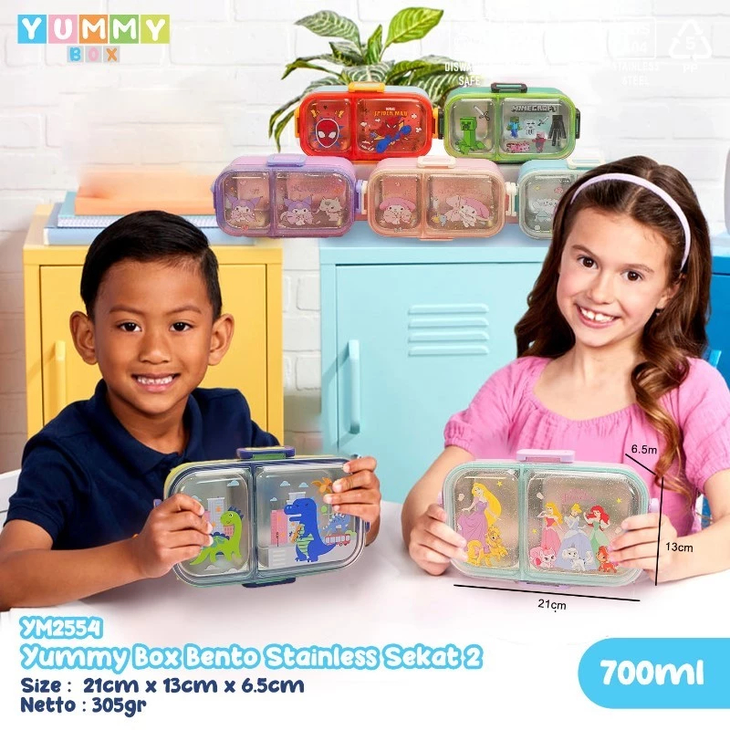 Yummy Box Bento Box Sekat 2 Volume 700Ml Dengan Penyekat Pisah Anti Kecampur 11129