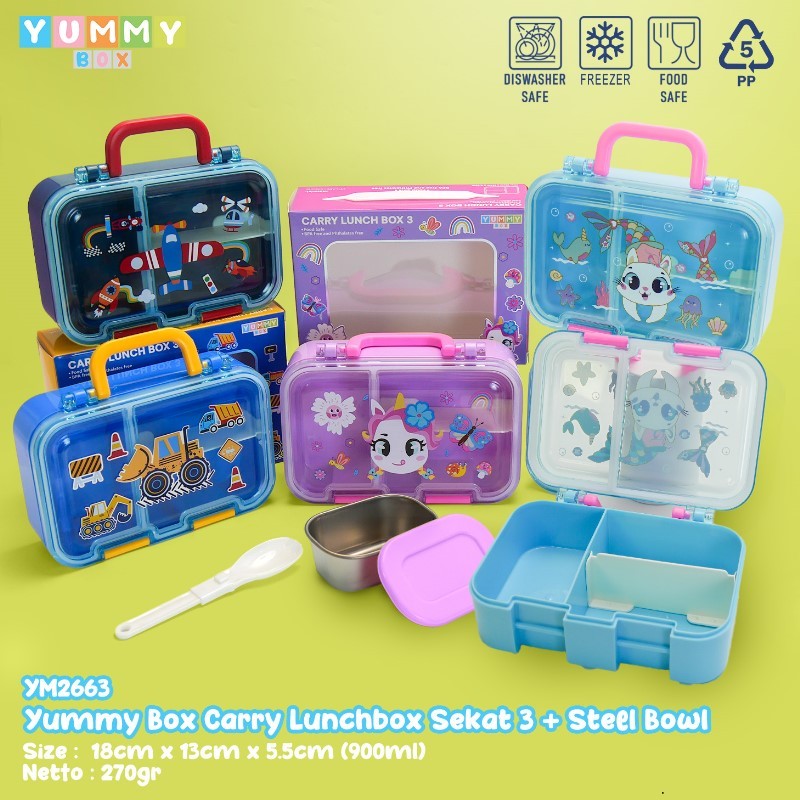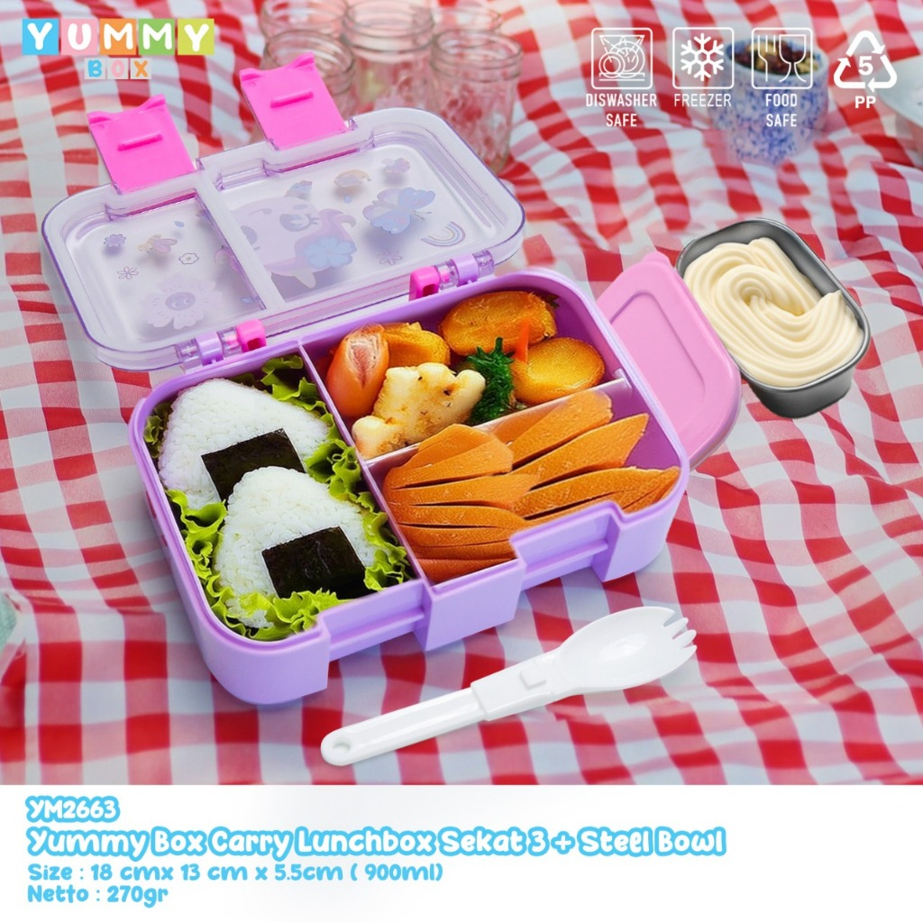 Yummy Box Carry Lunchbox Sekat 3+ Steel Bowl Bpa Free Ym2663