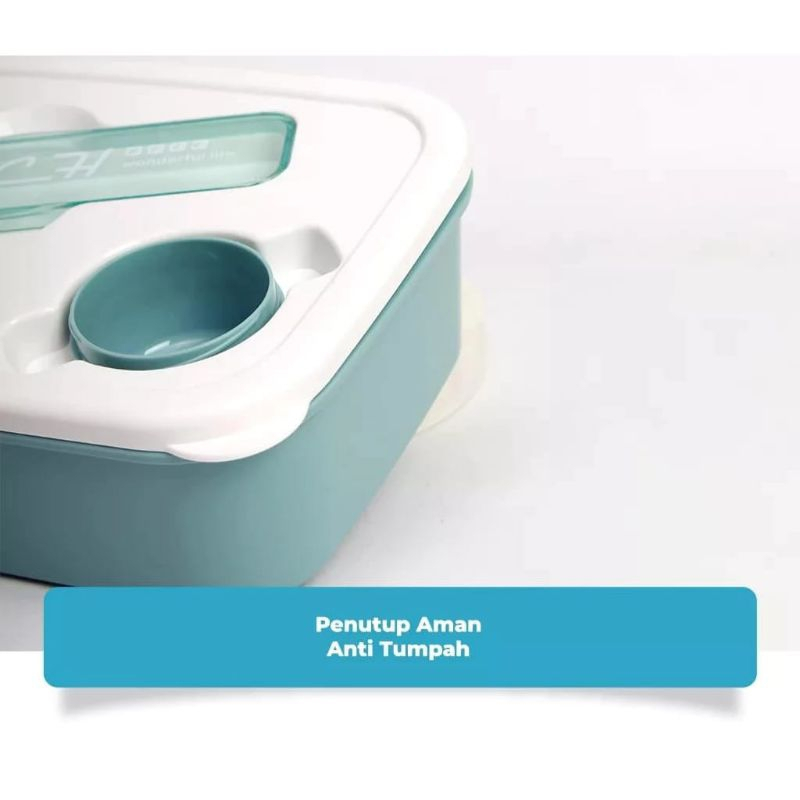 Zowoki Lunch Box Set/Kotak Bekal Set Sekat 3 Free Botol Dan Alat Makan