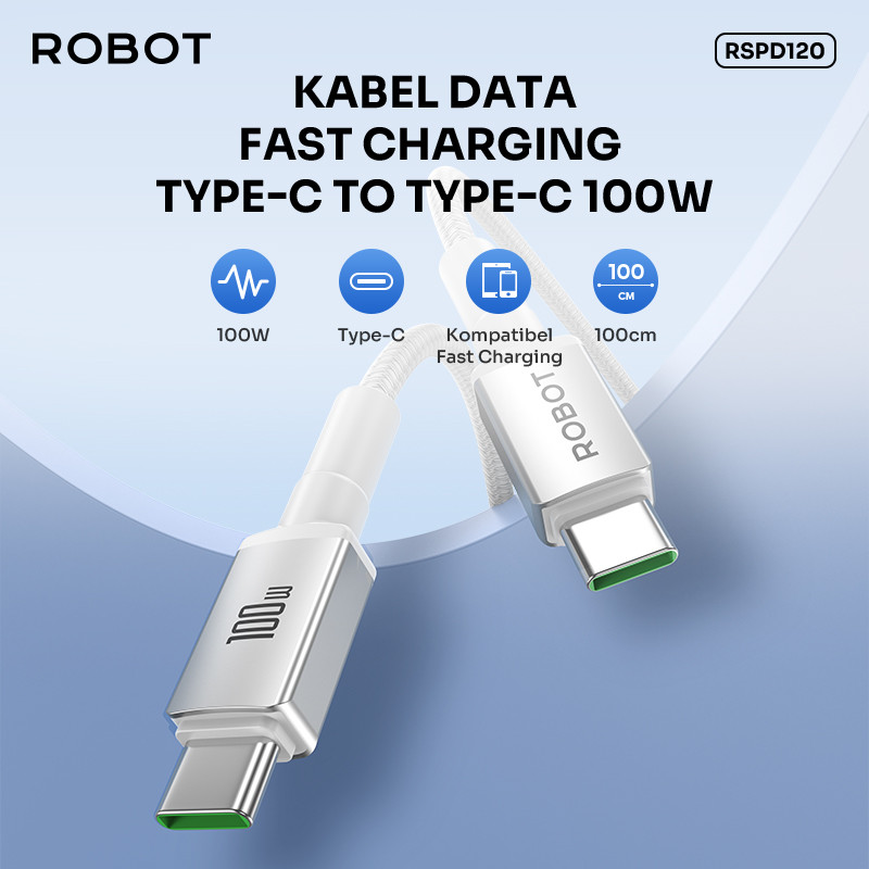 [Star] ROBOT Kabel Data Fast Charging Type C to Type C 100W Original RSPD120 - Garansi 1 Tahun