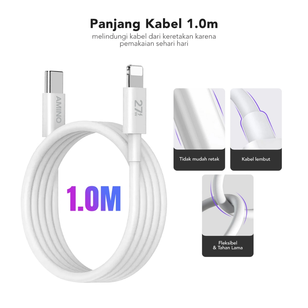 [Star] AMINO PD 27W For Iphone TYPE C to Lighting Kabel Data 1M Fast Charger Super Charging C TO L PD27-C untuk Iphone 1