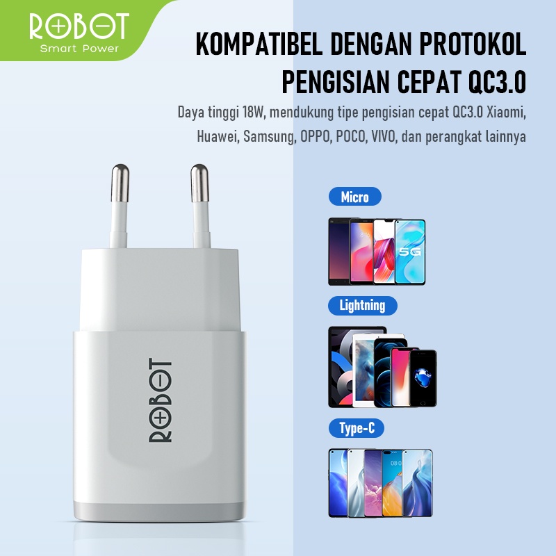 [Star] ROBOT Charger RT-L2 Single Port Quick Charging 18W QC3.0 Original Micro USB Type C Lightning - Garansi 1 Tahun