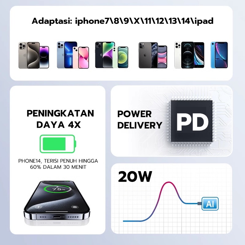 [Star] Jovitech Charger iPhone Ipad 20W Adaptor Fast Charging USB-C to Lightning Cable - CA01