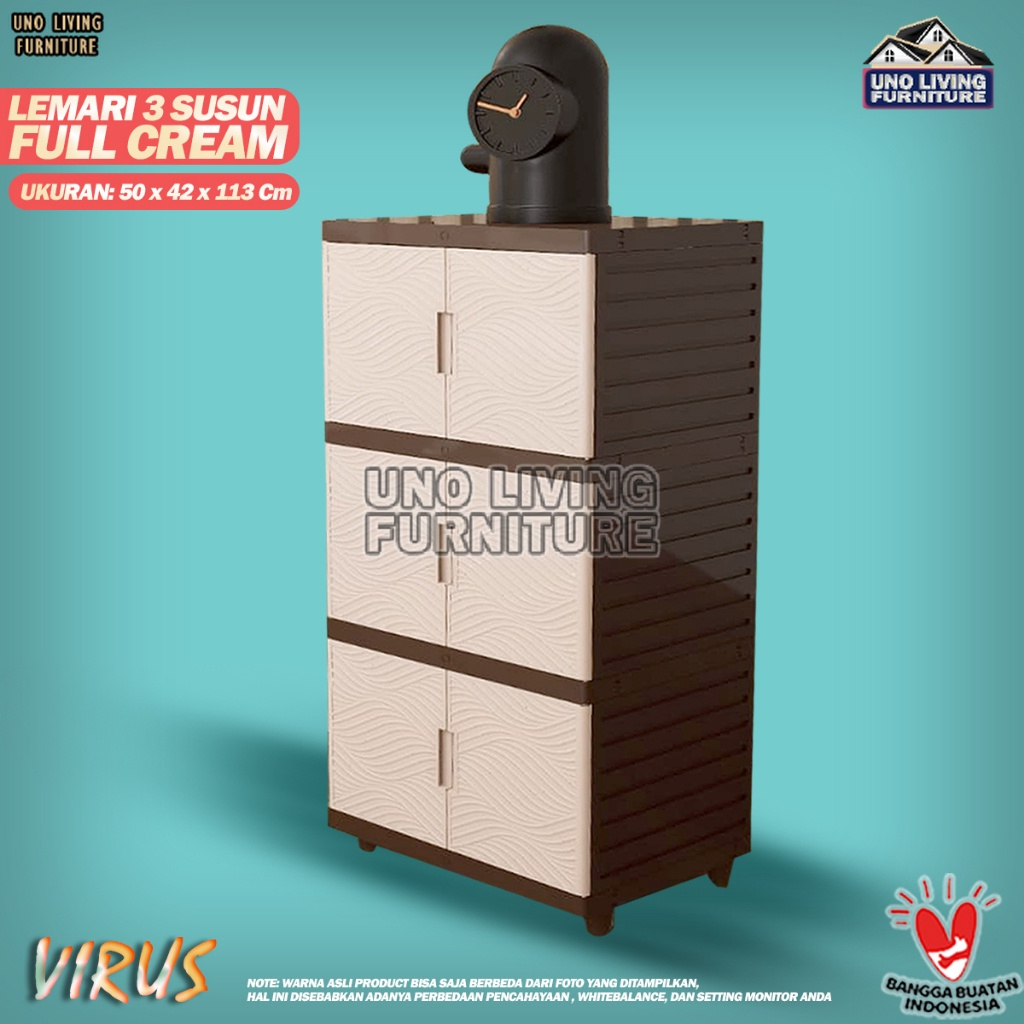 LEMARI PAKAIAN KINGDOM VIRUS 4 SUSUN LEMARI PINTU KABINET LEMARI PLASTIK MINIMALIS - FULL CREAM