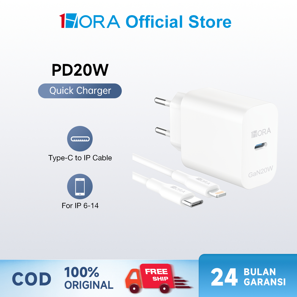 [Star] 1HORA Charger PD20W iPhone 11 12 13 14 6 7 8 X Fast Charging Adaptor With Kabel Type-C to Lightning GAR163