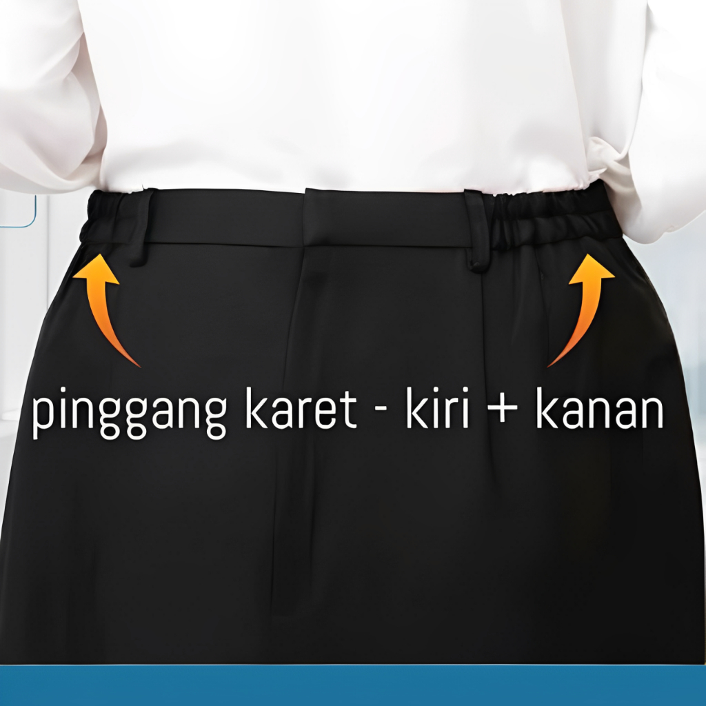 Garede - Rok Kerja A Line Wanita Formal Kantor Super Jumbo Bahan Panjang Pinggang Karet Hitam
