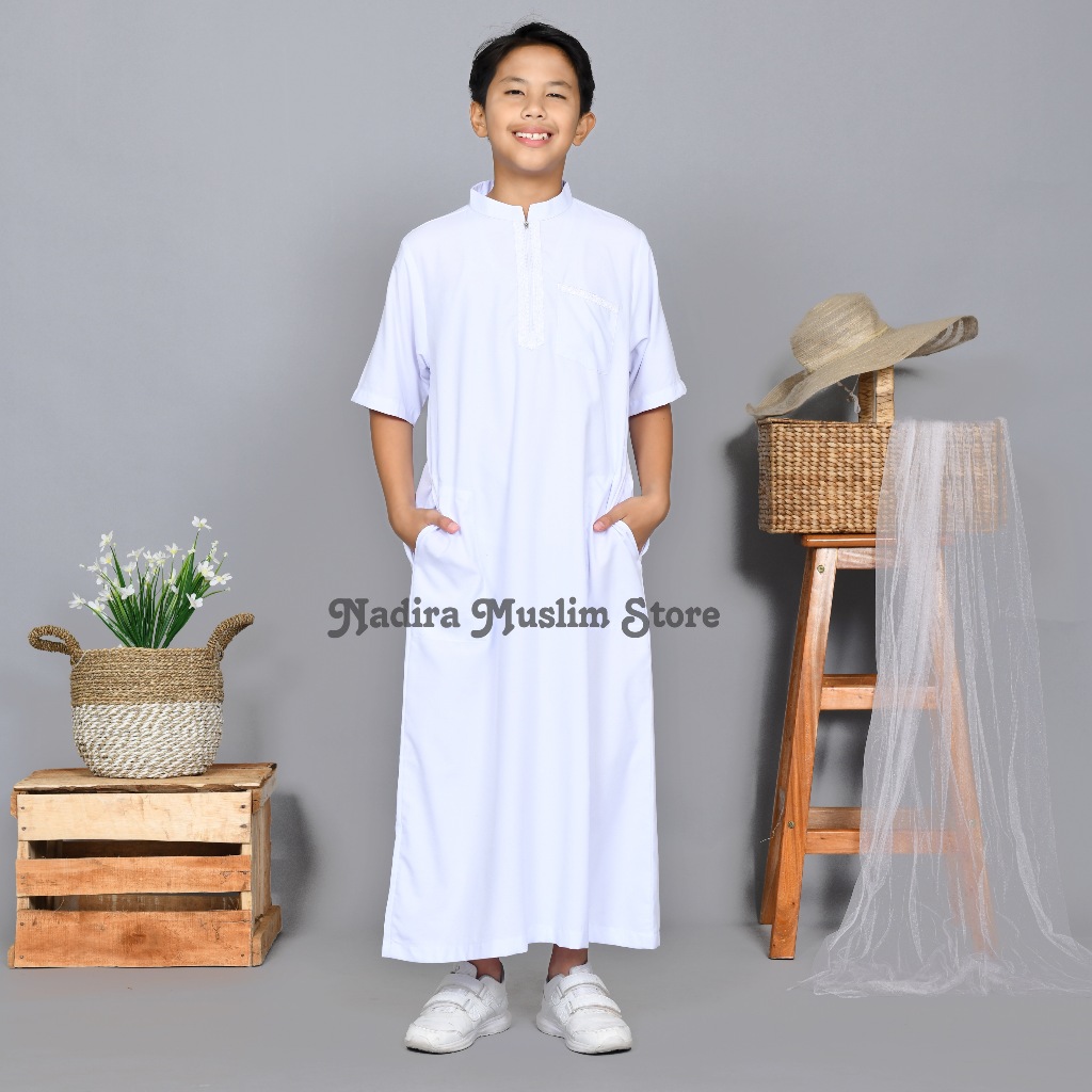 JUBAH ANAK LAKI - LAKI GAMIS LENGAN PENDEK ANAK LAKI - LAKI USIA 3 - 16 TAHUN BORDIR SIMPEL ELEGAN