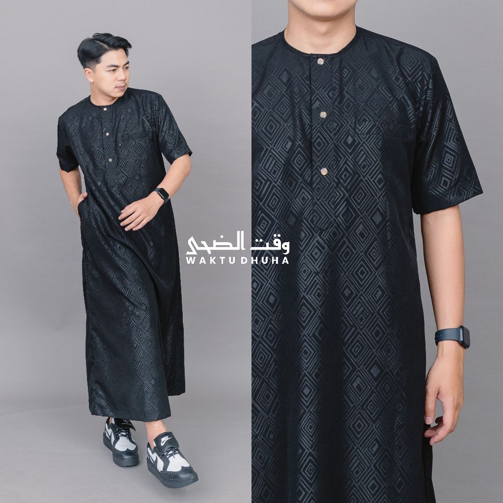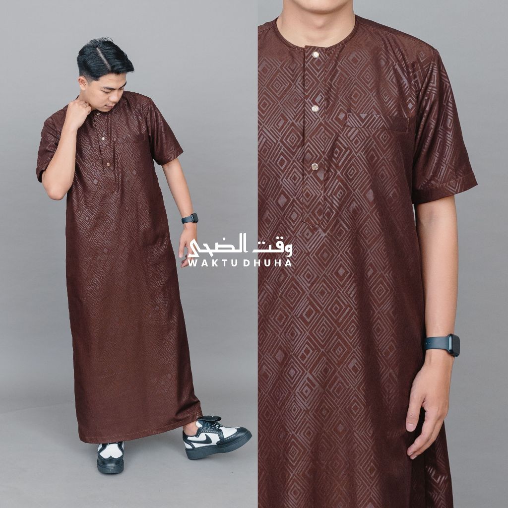 Gamis Jubah Lengan Pendek Pria Motif Embos Premium Jubah Azwar