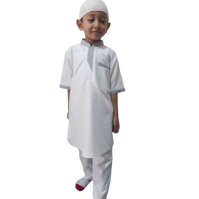 Setelan Koko Anak Laki laki Putih Baju Koko Anak Alfin Baju Mengaji