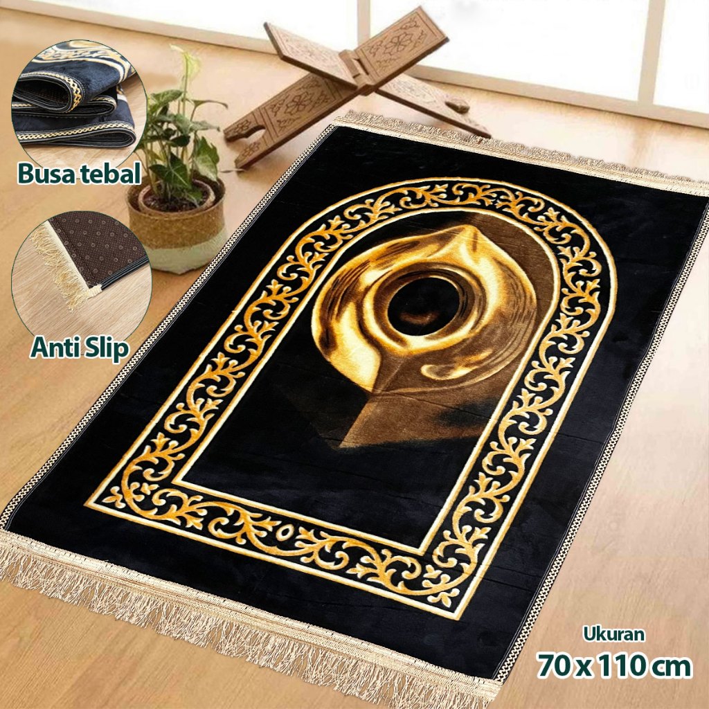 Sajadah Turki Hitam Kiswah 70x110cm Sajadah Rumbai Bludru Tebal Premium