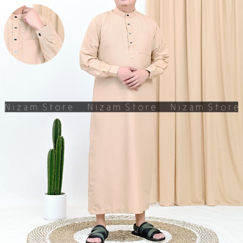 Gamis Pria Jubah Polos Lengan Manset Kancing Snap Pria Dewasa Muslim Putih Hitam Haji Umroh