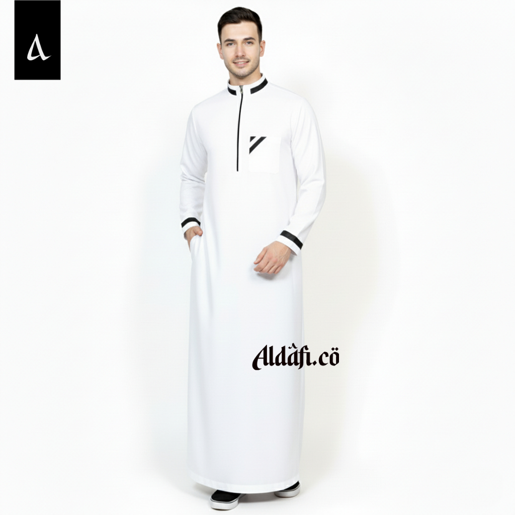 JUBAH PRIA MOTIF LIST SIMPLE DAN ELEGANT BONUS PECI DAN TASBIH GAMIS PRIA TERBARU
