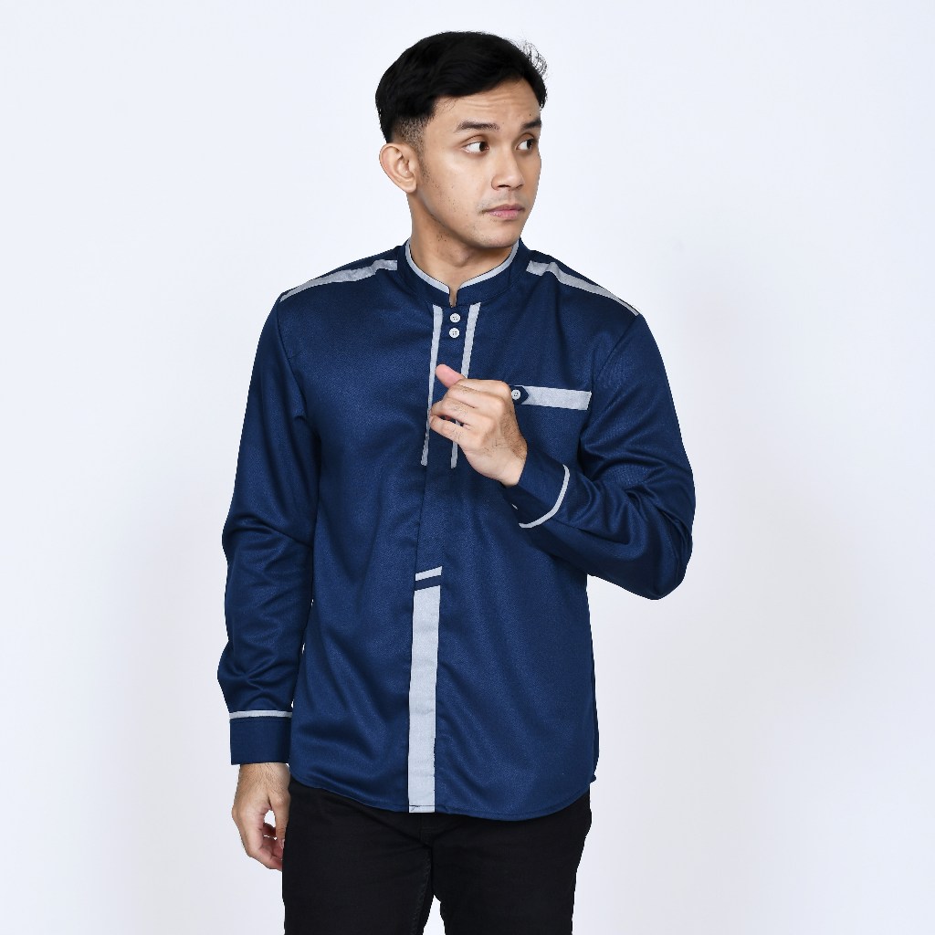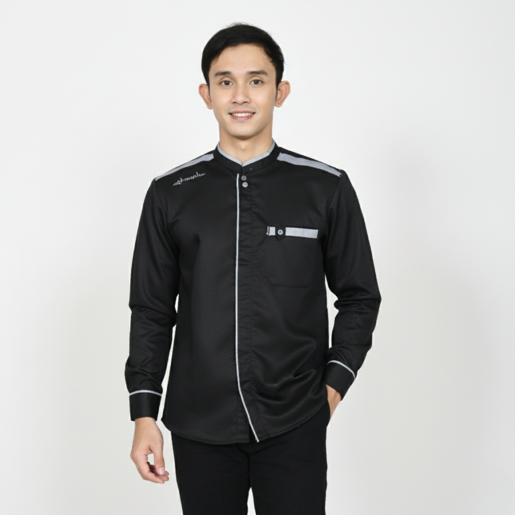 Baju Koko Pria Dewasa Lengan Panjang Warna Coklat Motif Katulistiwa Elrumi Katun